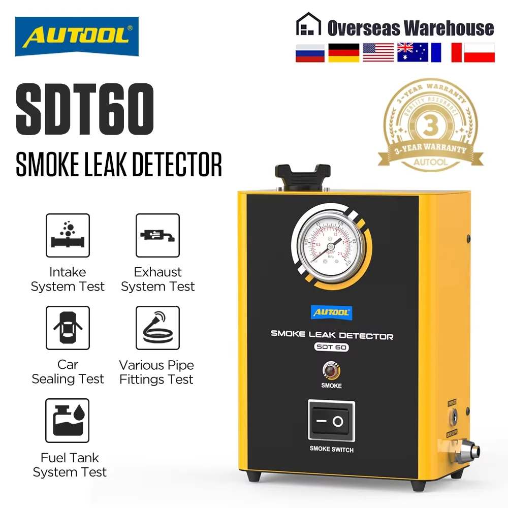 AUTOOL SDT60 Car Smoke Leak Detector — an outstandingly professional auto pipes leak Smoke Tester. It will help us position cars motorcycles leaks on the pipe systems in minutes, quickly and exactly, such as