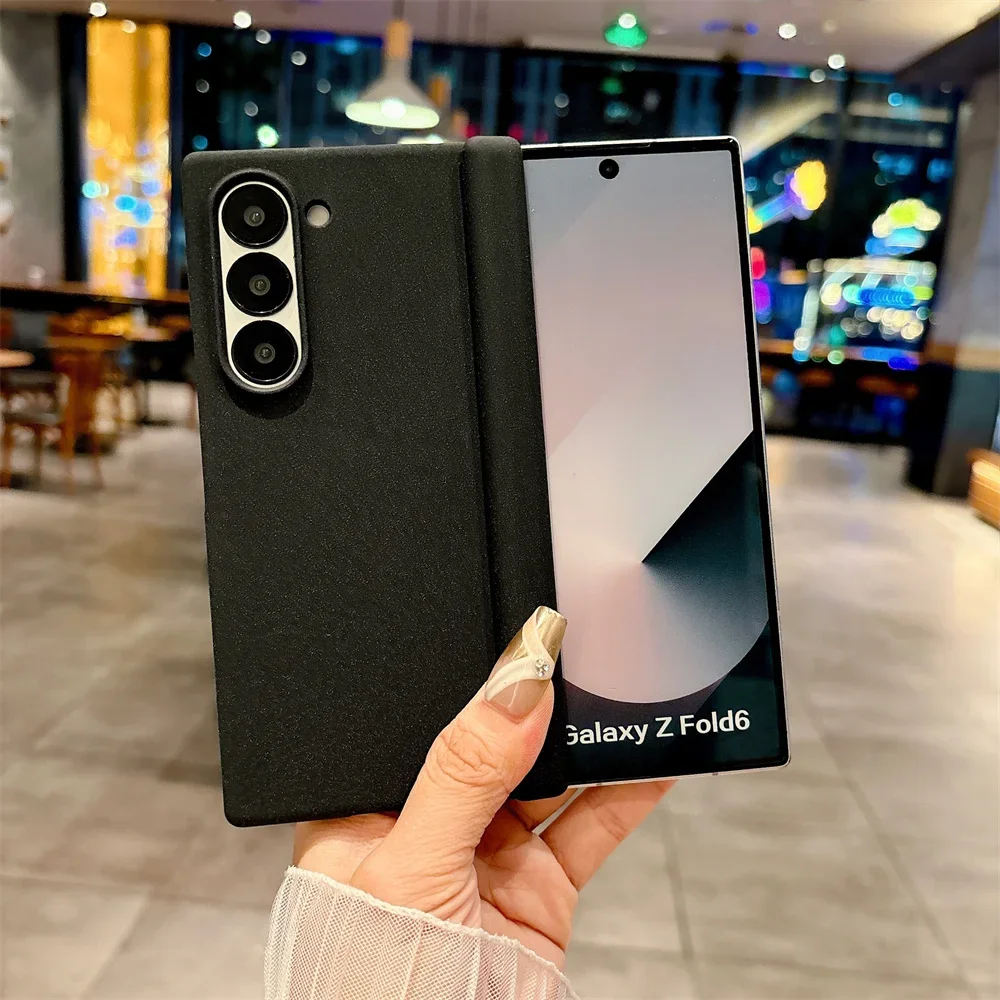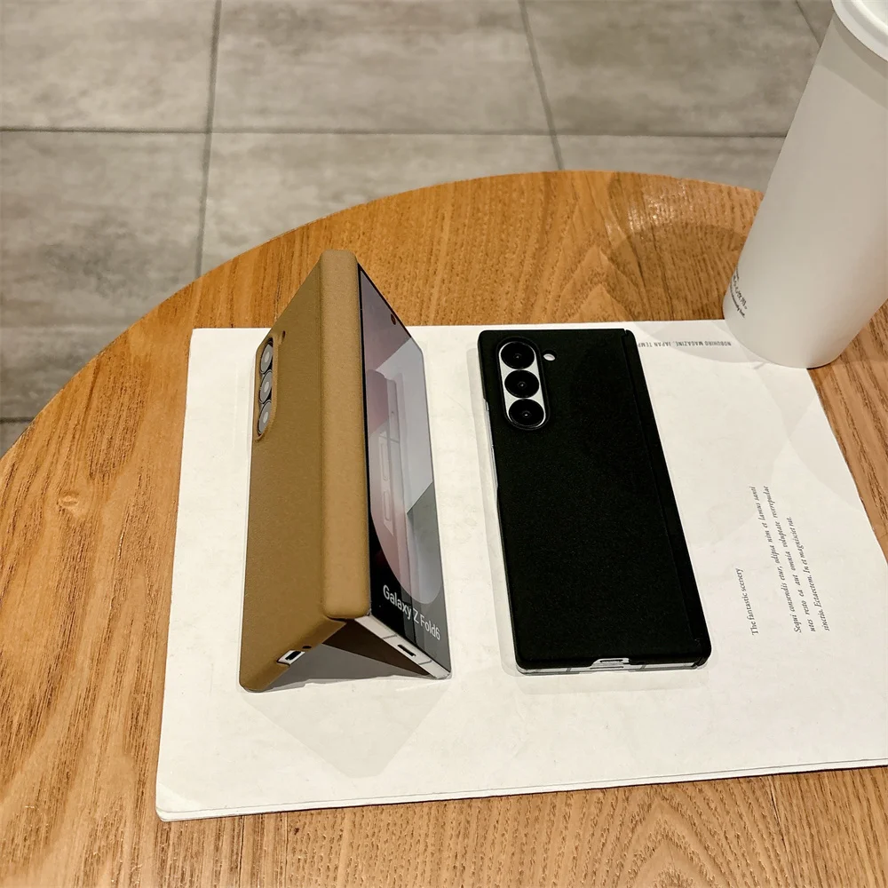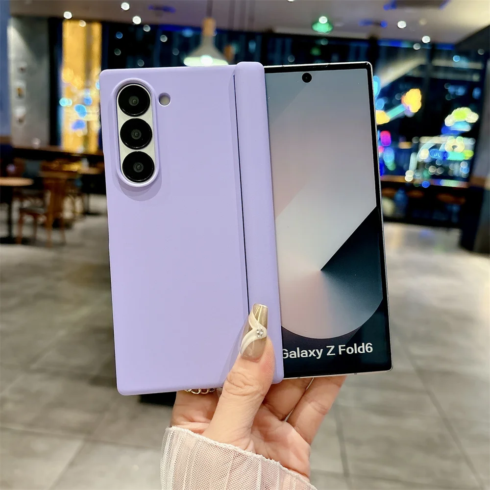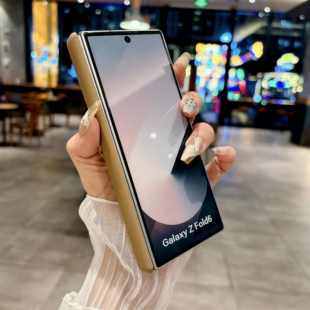 حافظة هاتف فاخرة بلون سادة لهاتف سامسونج جالاكسي Z Fold 7 6 5 محور مفصلي مقاوم للصدمات غلاف صلب للكمبيوتر الشخصي (الغطاء الخلفي فقط)
