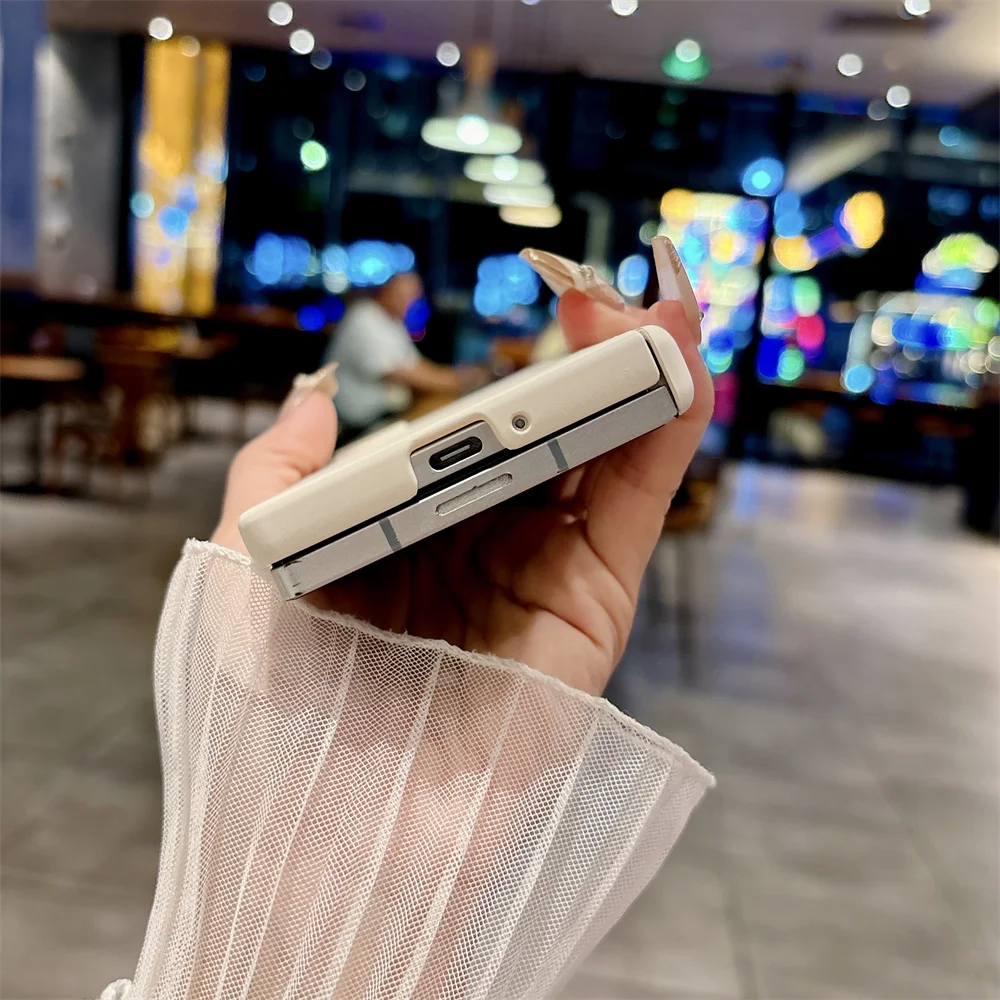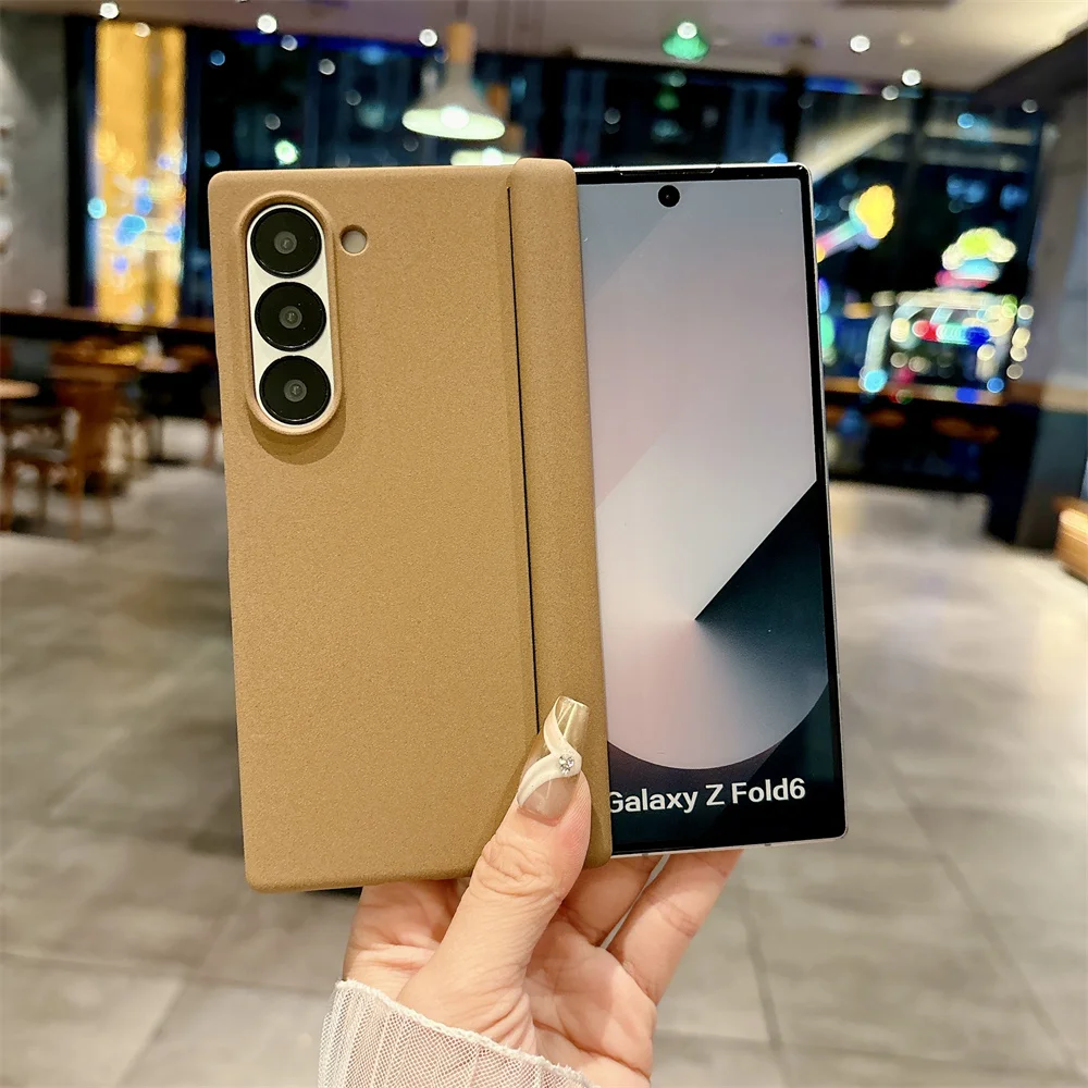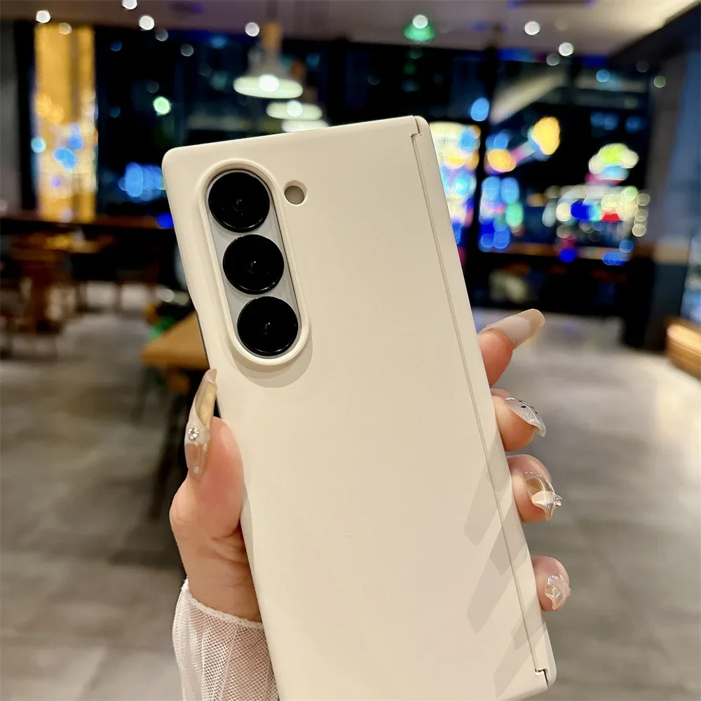 حافظة هاتف فاخرة بلون سادة لهاتف سامسونج جالاكسي Z Fold 7 6 5 Axis Hinge مضاد للصدمات الغلاف الصلب للكمبيوتر الشخصي (الغطاء الخلفي فقط)