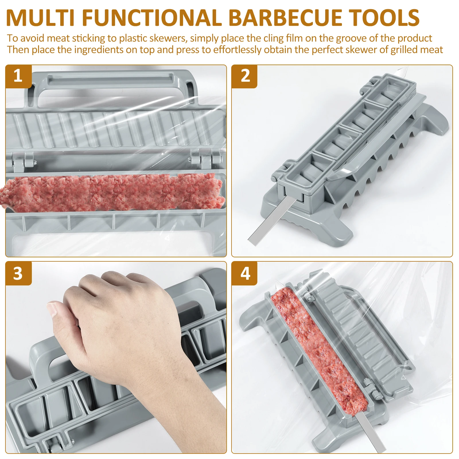 [آمن وسهل التنظيف] مصنوع من مادة بلاستيك ABS، آمن ويمكن ارتداؤه، وقابل لإعادة الاستخدام.صانع الكباب الخاص بنا سلس وسهل التنظيف والصيانة، مما يمكن أن يبسط عملية الشواء.