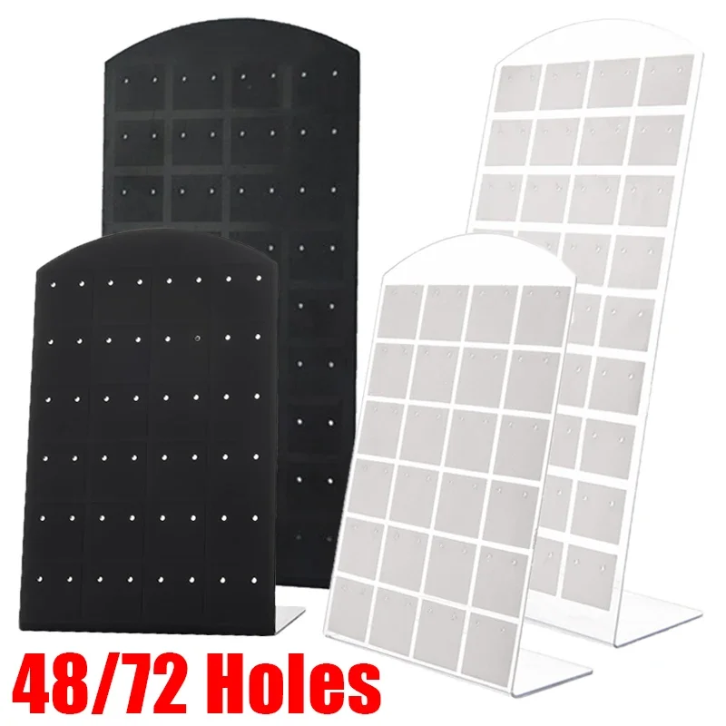 2 قطعة 48/72 ثقوب المحمولة أقراط الأذن ترصيع حامل البلاستيك مجوهرات عرض أصحاب القرط عرض المنظم حامل تخزين الرف
