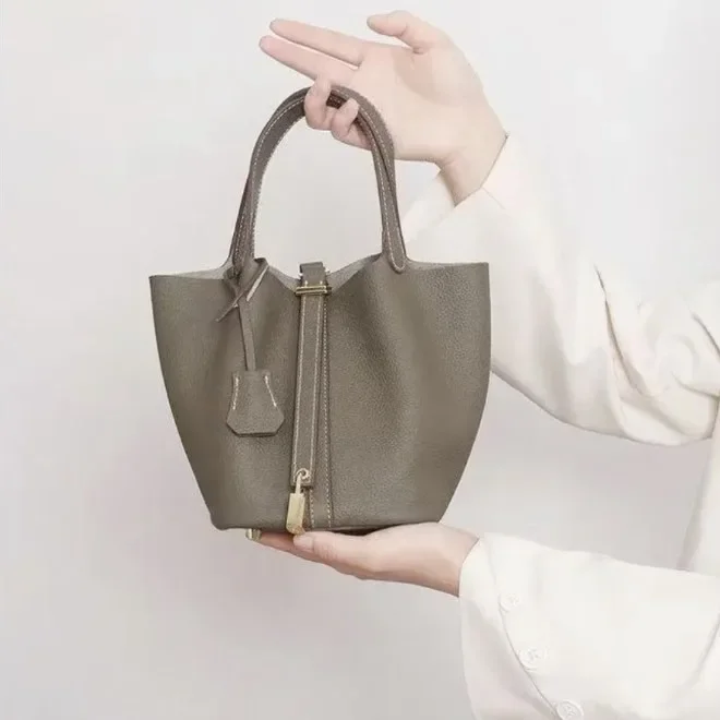 سعة كبيرة حقيبة يد من البولي يوريثان سلة بسيطة لون نقي ريترو يشعر لينة دلو حقيبة محايدة الحد الأدنى نمط مقصورة داخلية