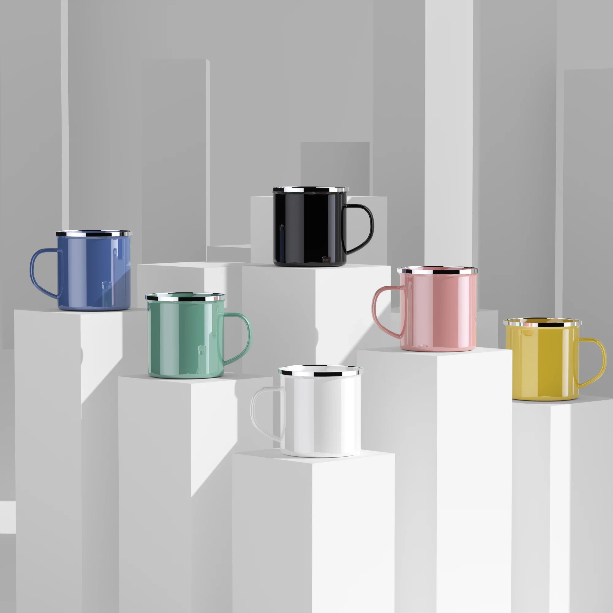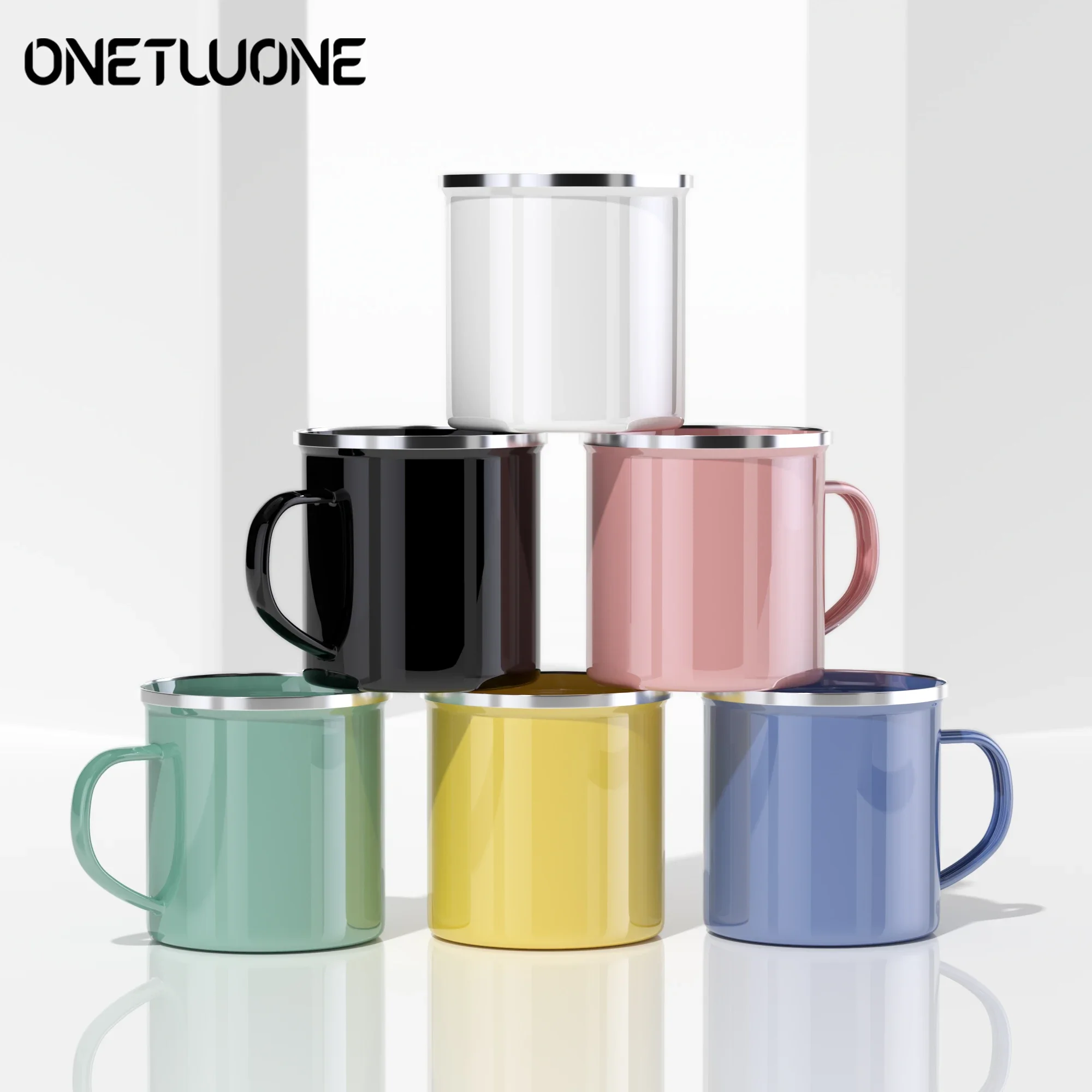 350 مللي كوب قهوة من المينا مخيم القهوة أكواب شاي صغيرة من المينا مقبض واسع وحافة ناعمة ، محمول متين للمطبخ والمكتب والتخييم