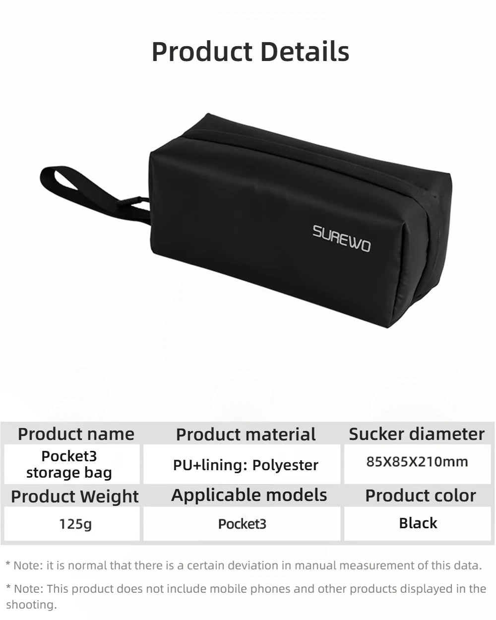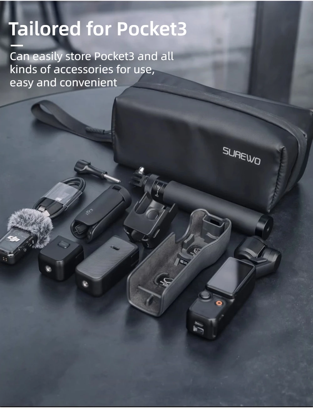 1.مصممة خصيصًا لـ Pocket3: يمكن بسهولة تخزين Pocket3 وجميع أنواع الملحقات للاستخدام، سهلة ومريحة