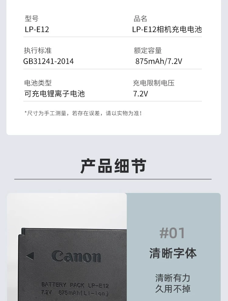 بطارية LP-E12 مناسبة لشواحن كاميرات Canon بدون مرآة مثل M50 Mark II وM200 و100D وM100.