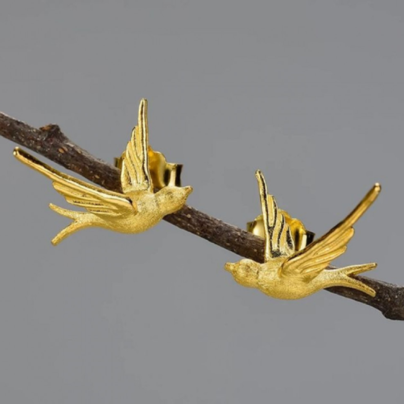 أقراط العصافير فضة 925 مصنوعة يدوياً