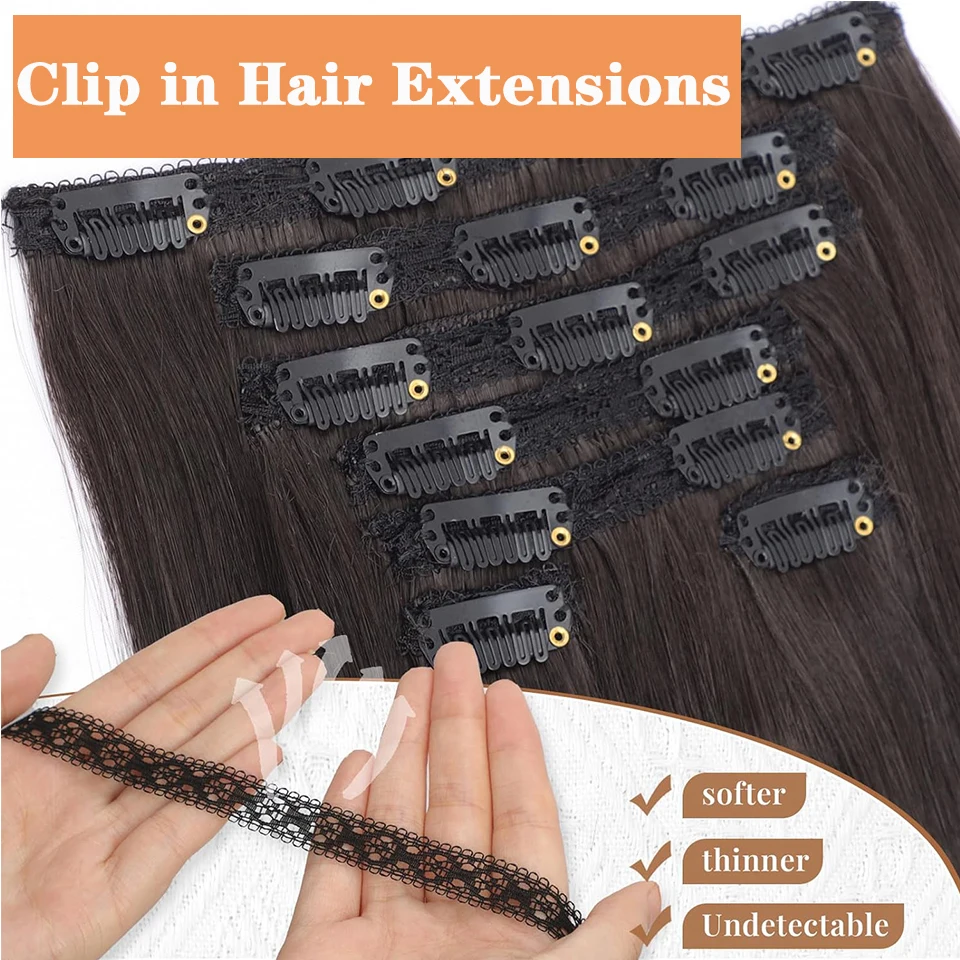 7 قطع مشابك في وصلات الشعر سميكة طويلة مستقيمة ترقية لينة الدانتيل لحمة خفيفة الوزن الطبقات هيربيسي البني 20 بوصة للنساء