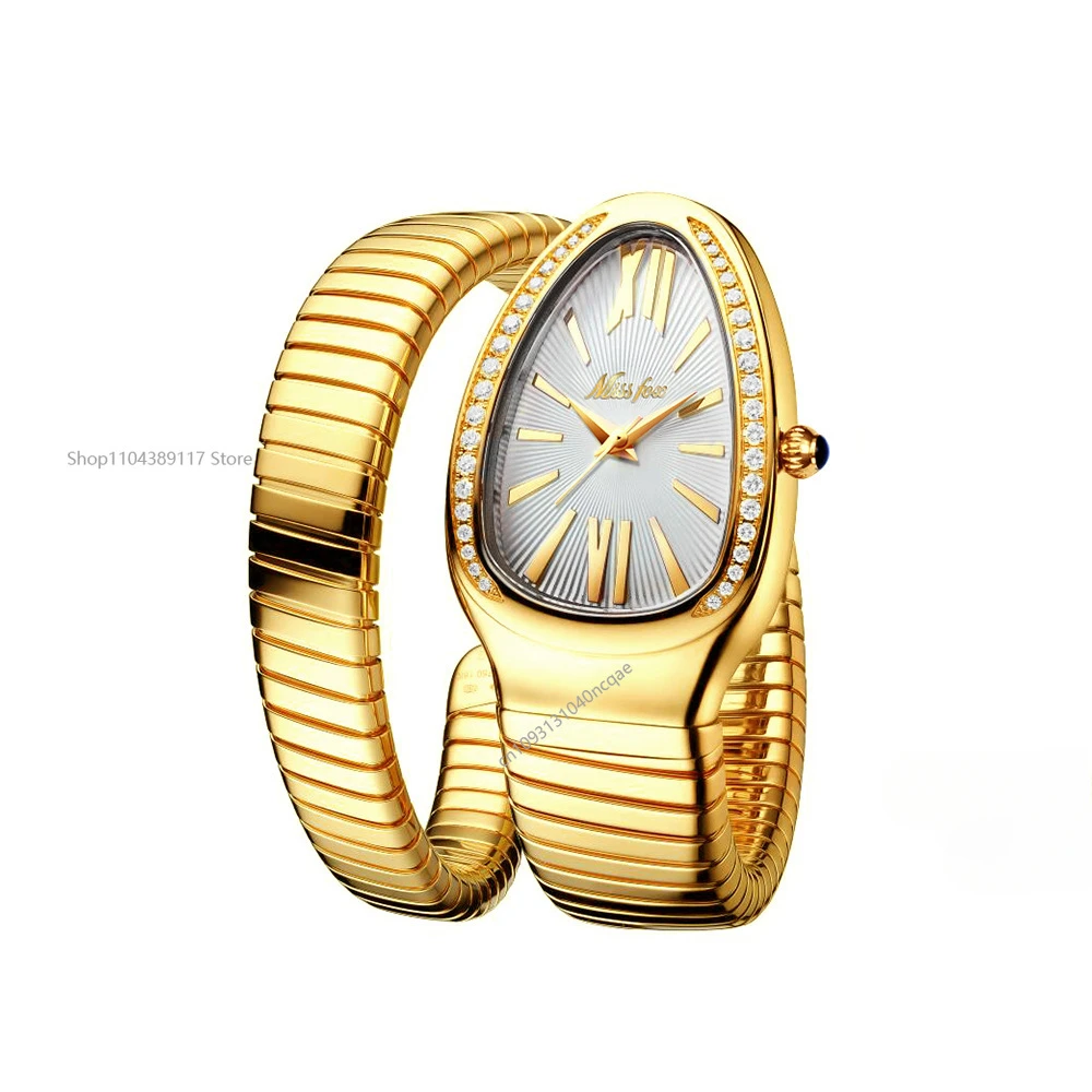 ساعة كلاسيكية على شكل ثعبان للنساء ساعة يد ذهبية وفضية قابلة للتطوير وسوار نسائي ساعات بلينغ كوارتز للسيدات
