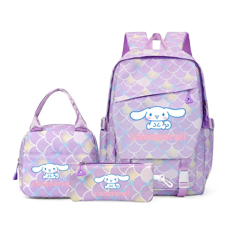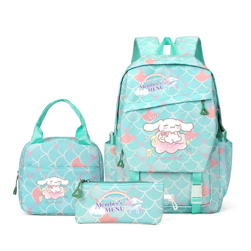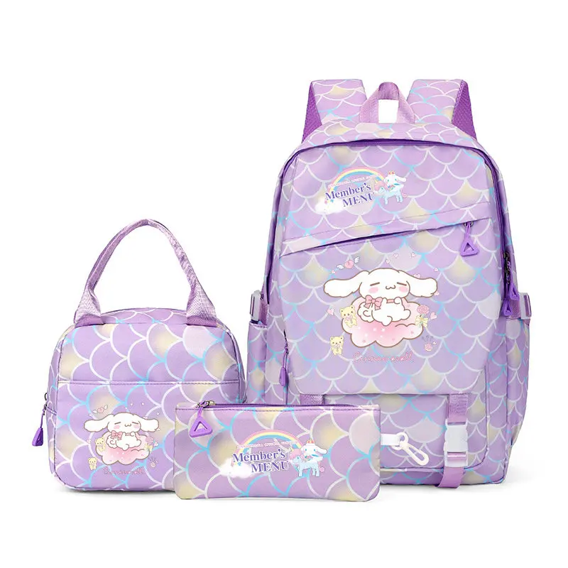 سينامورول 3 قطعة/المجموعة حقيبة الظهر سعة الطلاب على ظهره عادية Kawaii نايلون حقيبة كتف مزدوجة موضة السفر كلية Mochilas