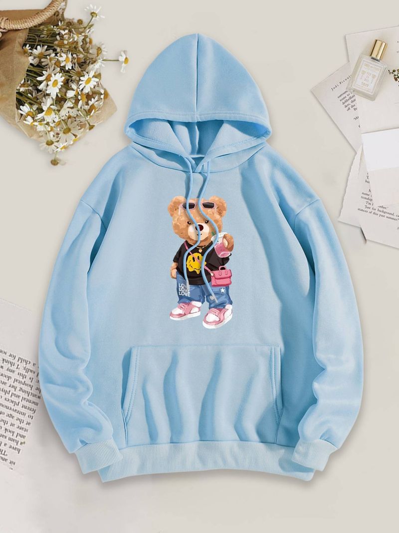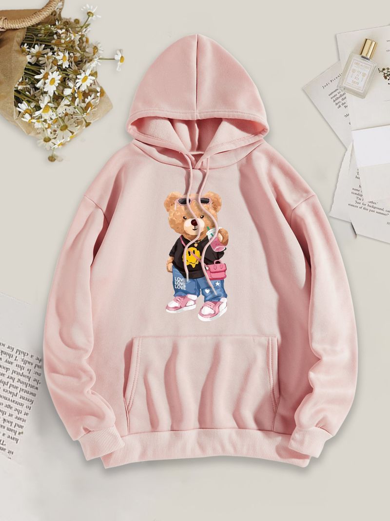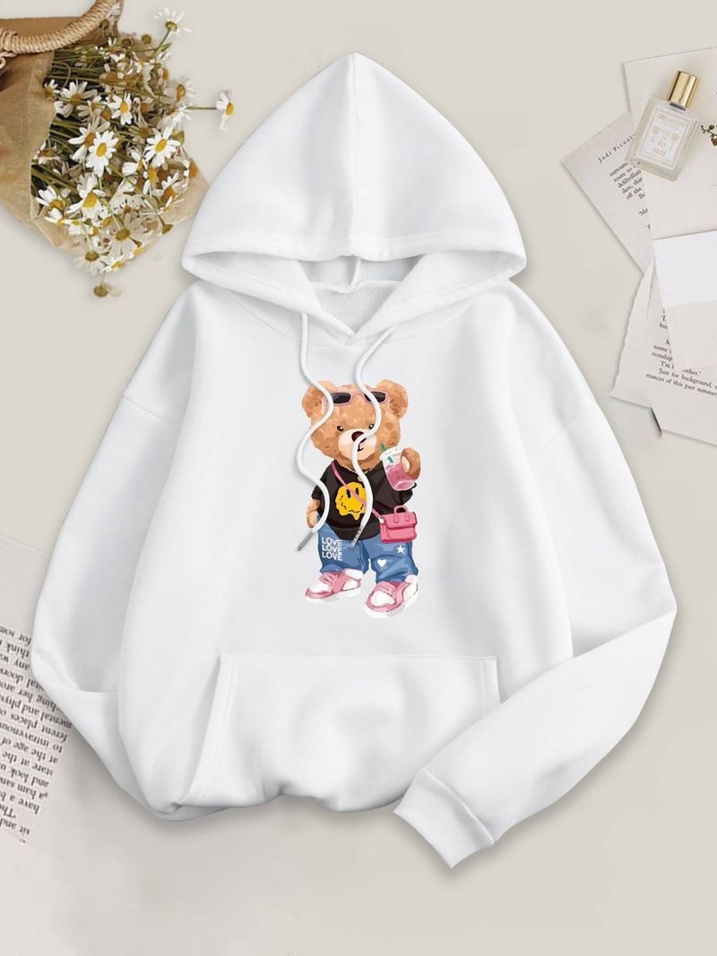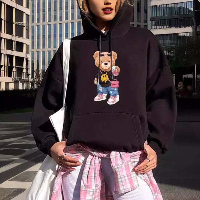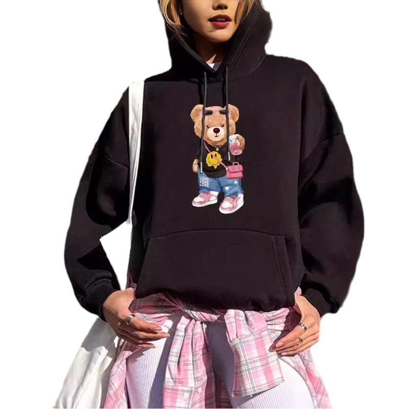 ملابس نسائية سweatshirtood مع هودية مطبوعة برسومات دب كرتوني متعددة الألوان غير رسمية للنساء