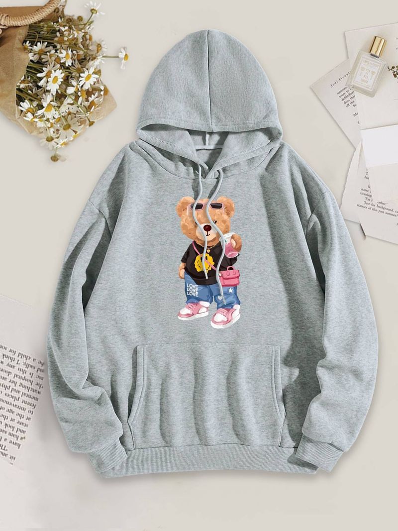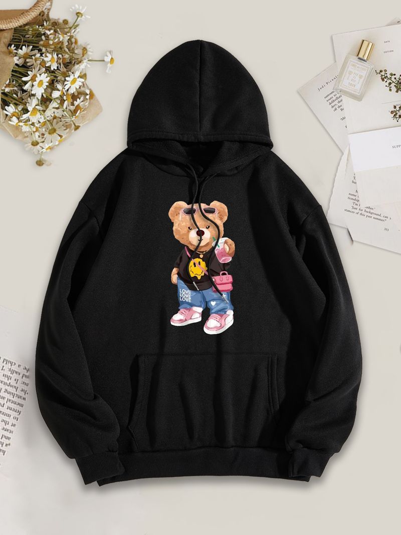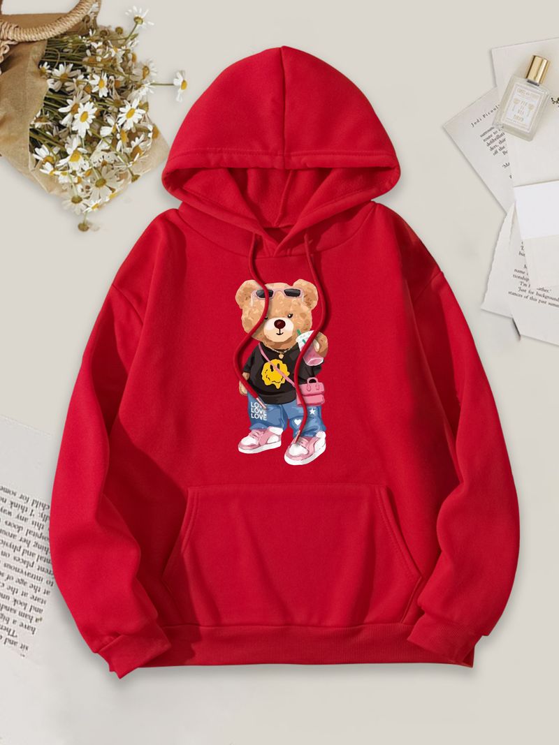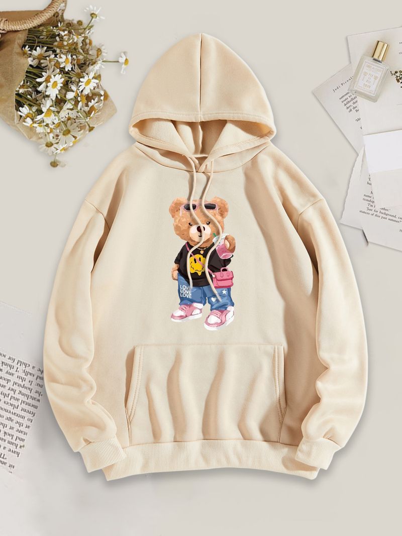 ملابس نسائية سweatshirtood مع هودية مطبوعة برسومات دب كرتوني متعددة الألوان غير رسمية للنساء
