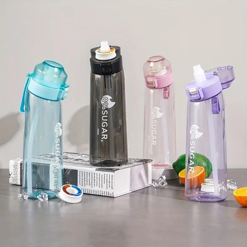 زجاجة مياه رياضية محمولة 650 مللي/22 أونصة مع 7 كبسولات نكهة زجاجة مياه معطرة مانعة للتسرب مع شفاطة للأنشطة الخارجية في صالة الألعاب الرياضية
