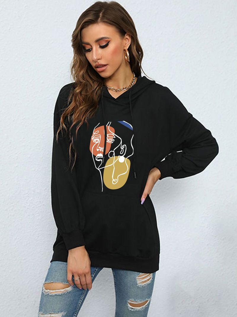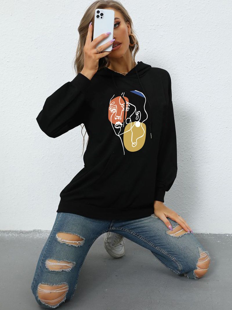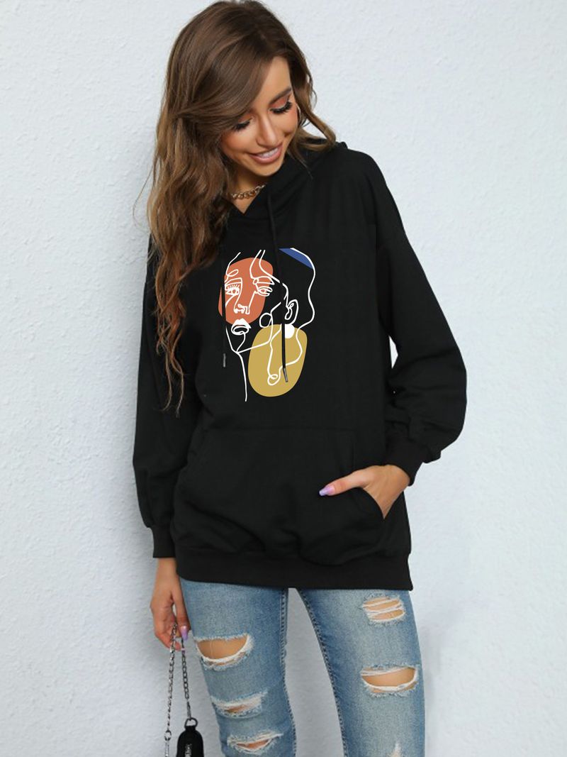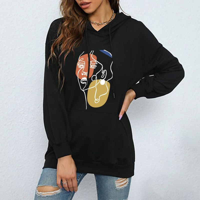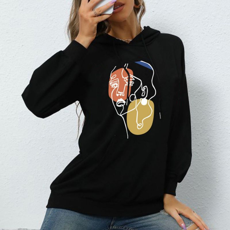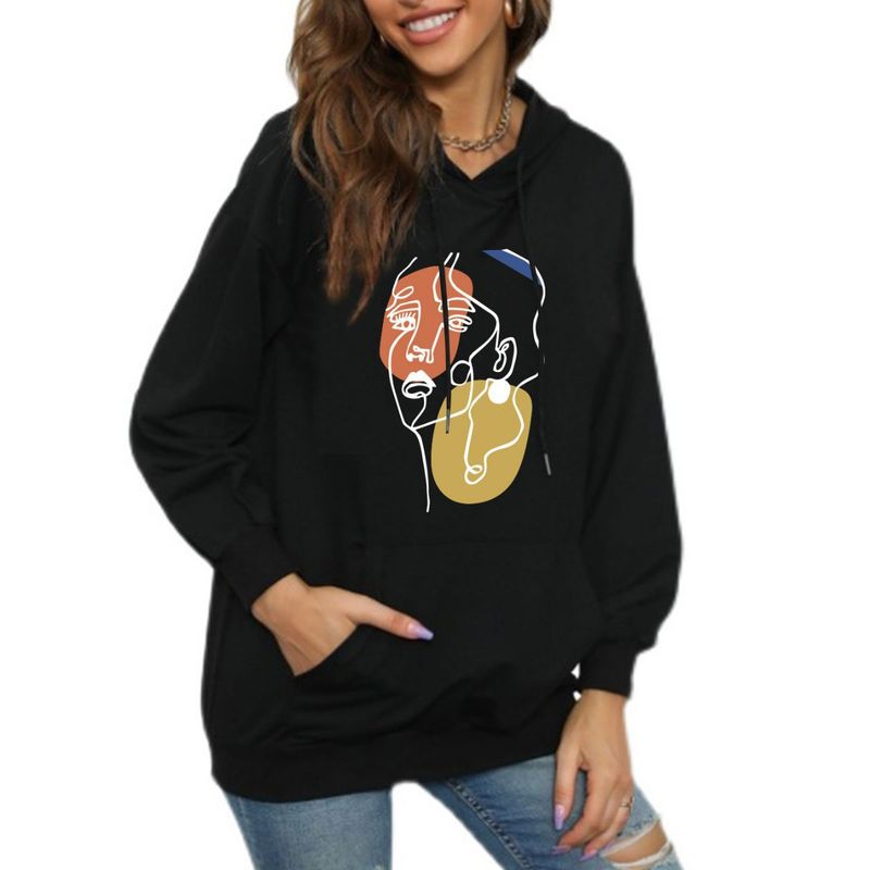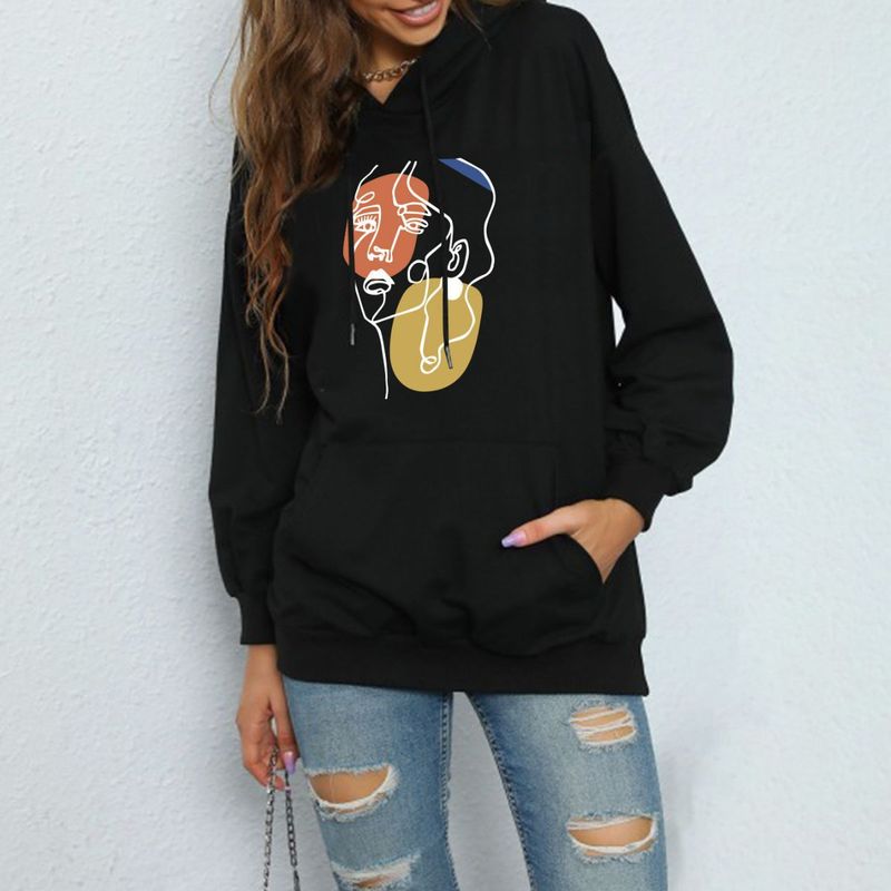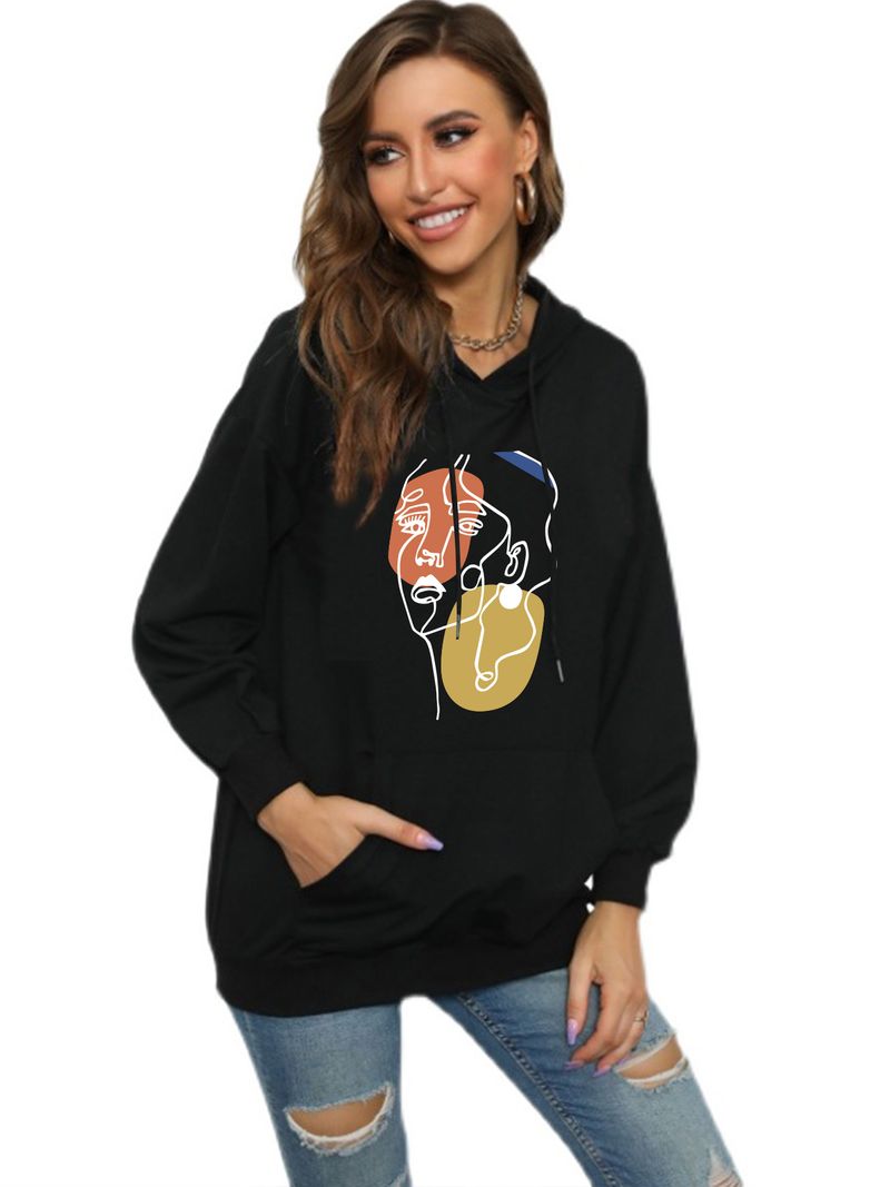 ملابس نسائية طباعة حروف ربيع وخريف موضة كاجوال حقيبة ظهر عنق بلوزة مع فرو هودي فضفاض سويتشرت للطالبات