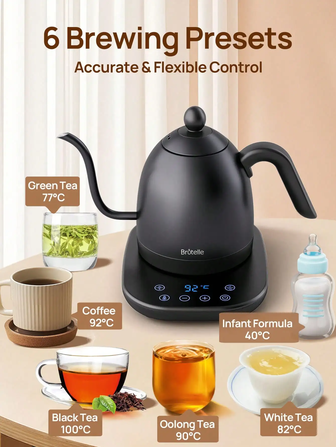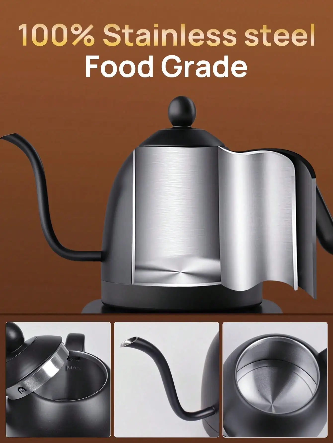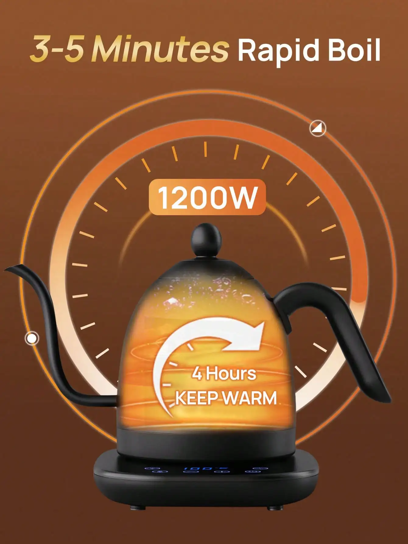 غلاية كهربائية معقوفة غلاية قهوة غلاية شاي 0.8 لتر 1200 وات طاقة قابلة للتعديل درجة الحرارة مع عزل تسخين سريع