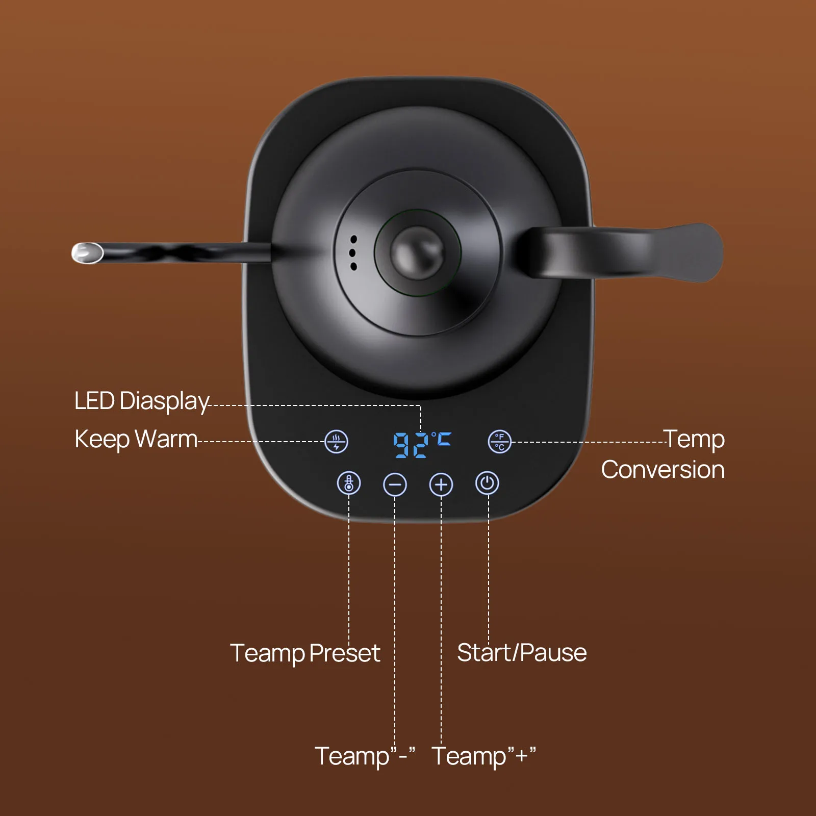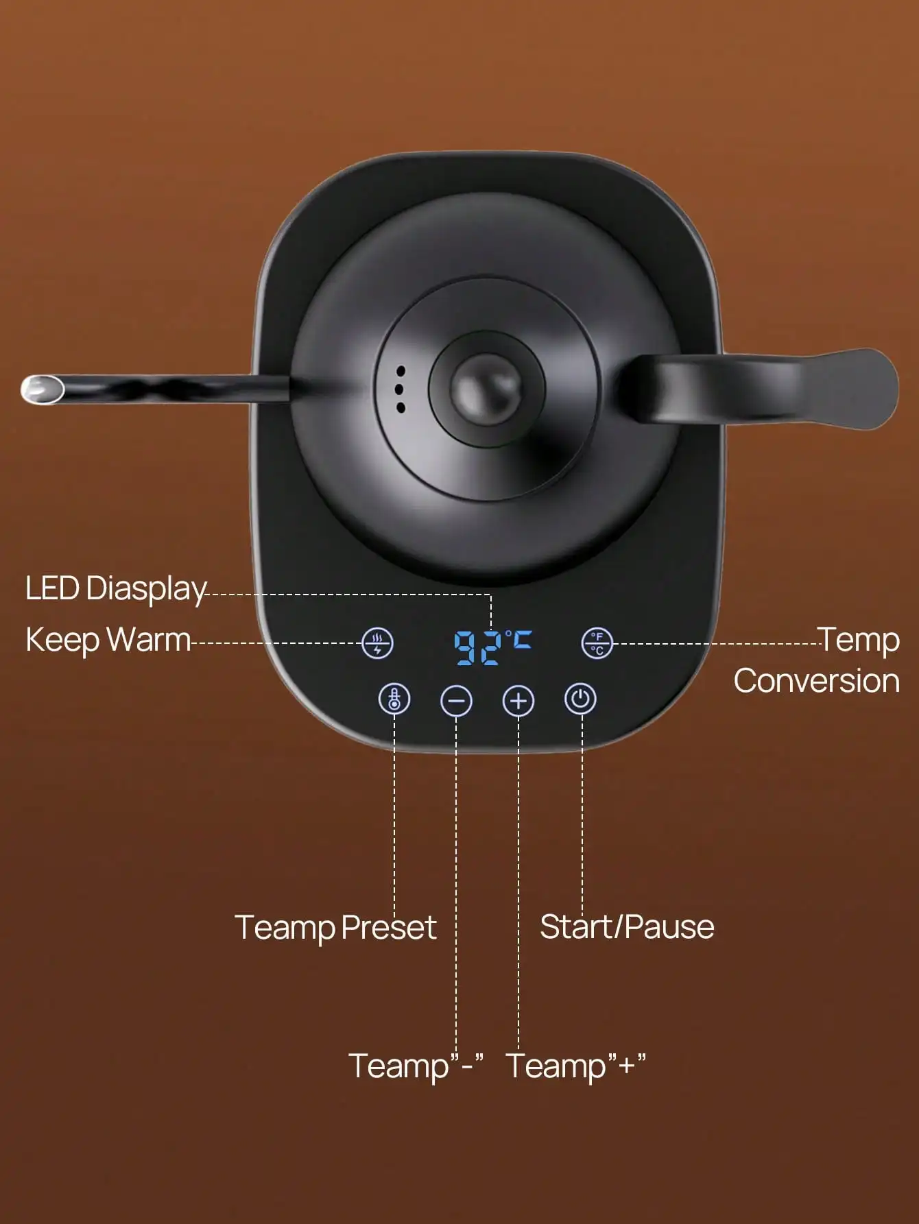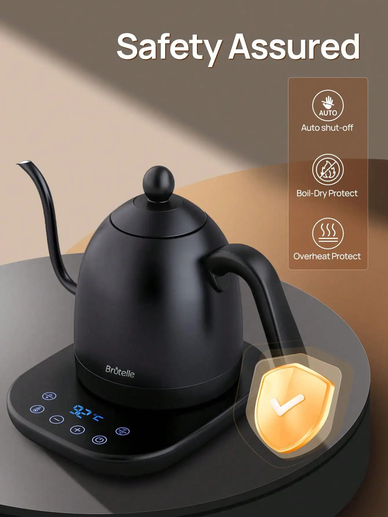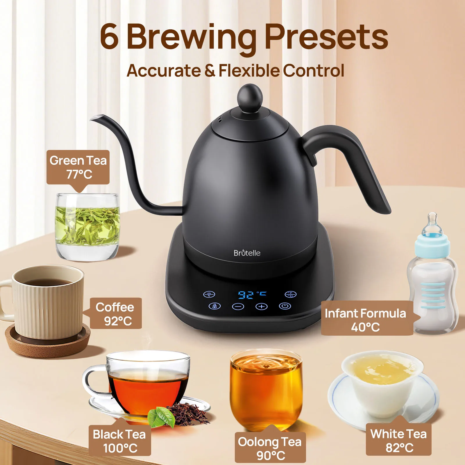 غلاية كهربائية معقوفة غلاية قهوة غلاية شاي 0.8 لتر 1200 وات طاقة قابلة للتعديل درجة الحرارة مع عزل تسخين سريع