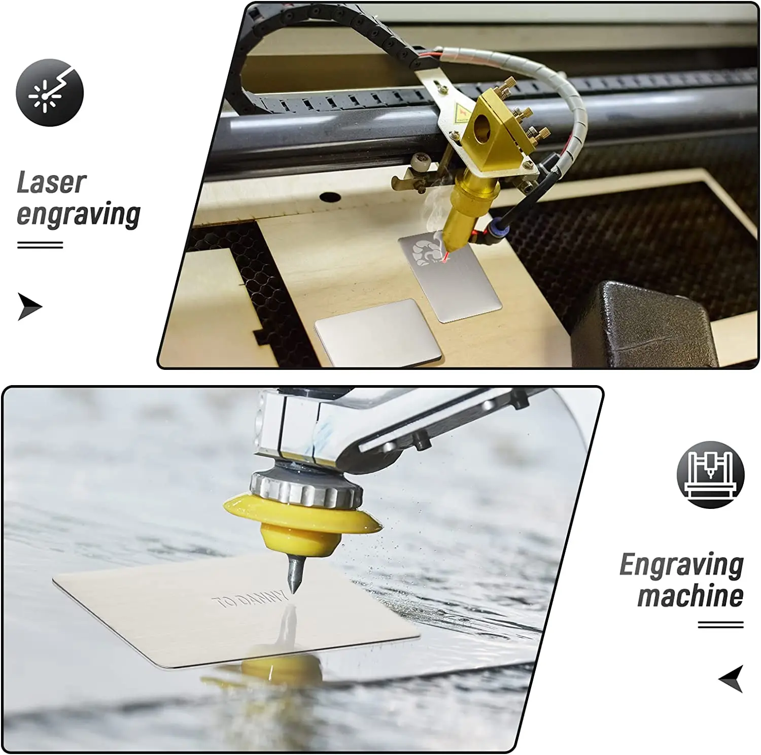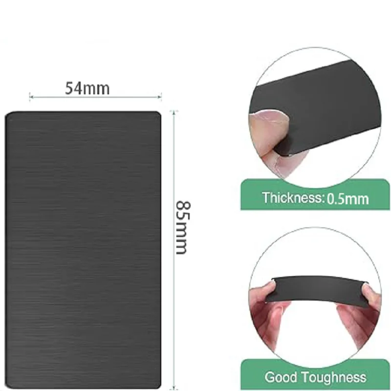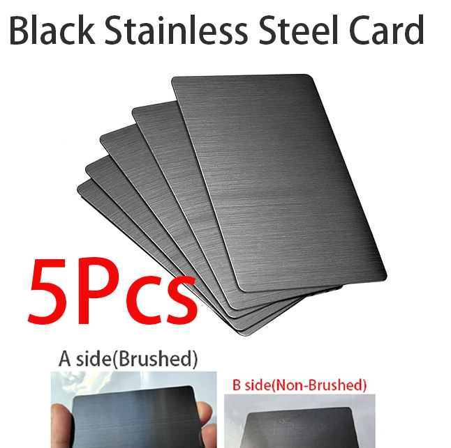 5/10 قطعة بطاقات الأعمال المعدنية الفارغة 0.5 مللي متر سميكة وعاء من الستانليس ستيل الأسود النقش بالليزر بطاقات الفولاذ المقاوم للصدأ العملاء لوحة هدية ذاتية الصنع