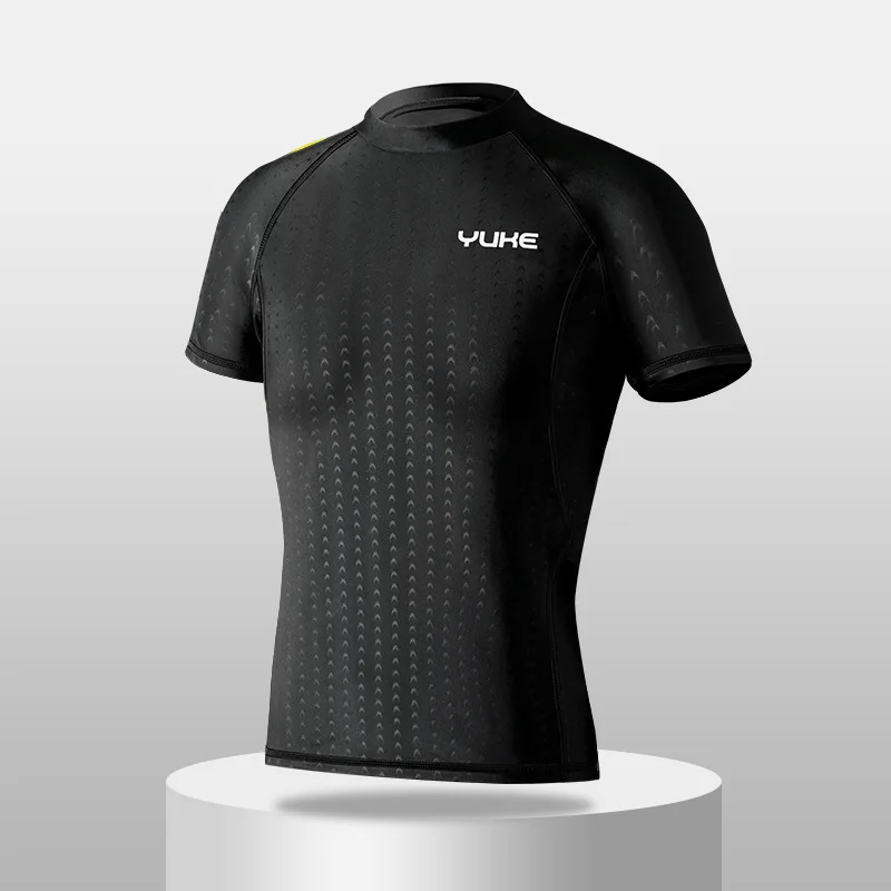 يوكي-ملابس سباحة سريعة الجفاف للرجال ، قمة سباحة ، واقي من الطفح الجلدي للشاطئ ، بدلة سباحة لركوب الأمواج ، قميص بأكمام قصيرة ، قميص دافئ ، سريع الجفاف