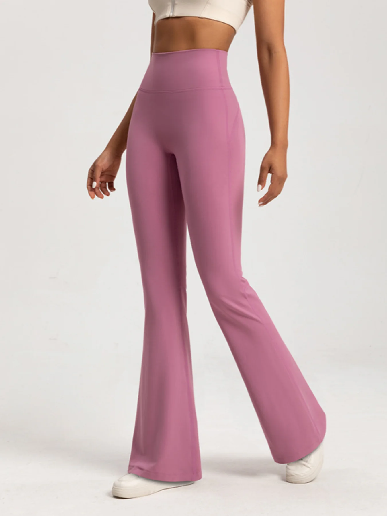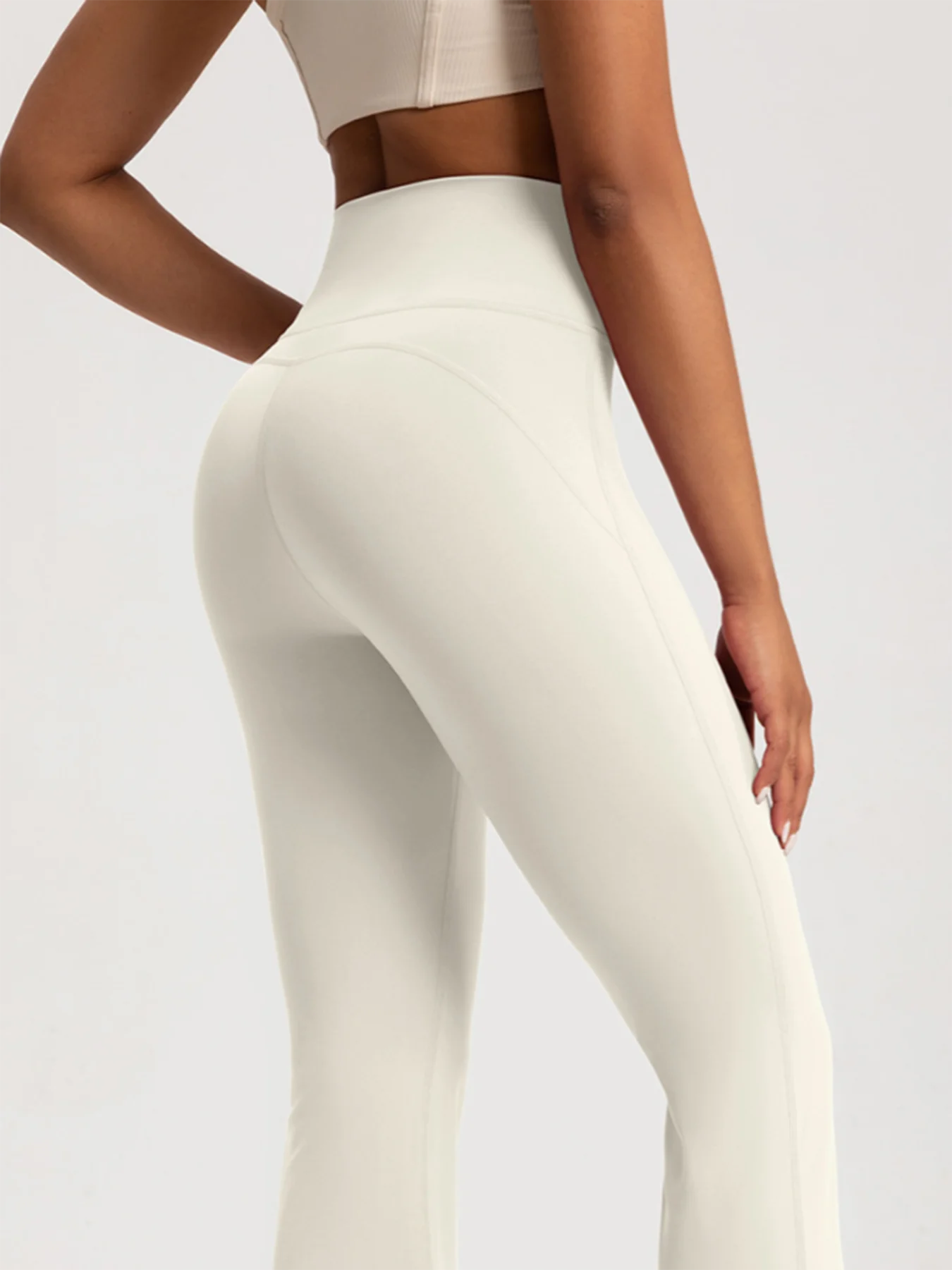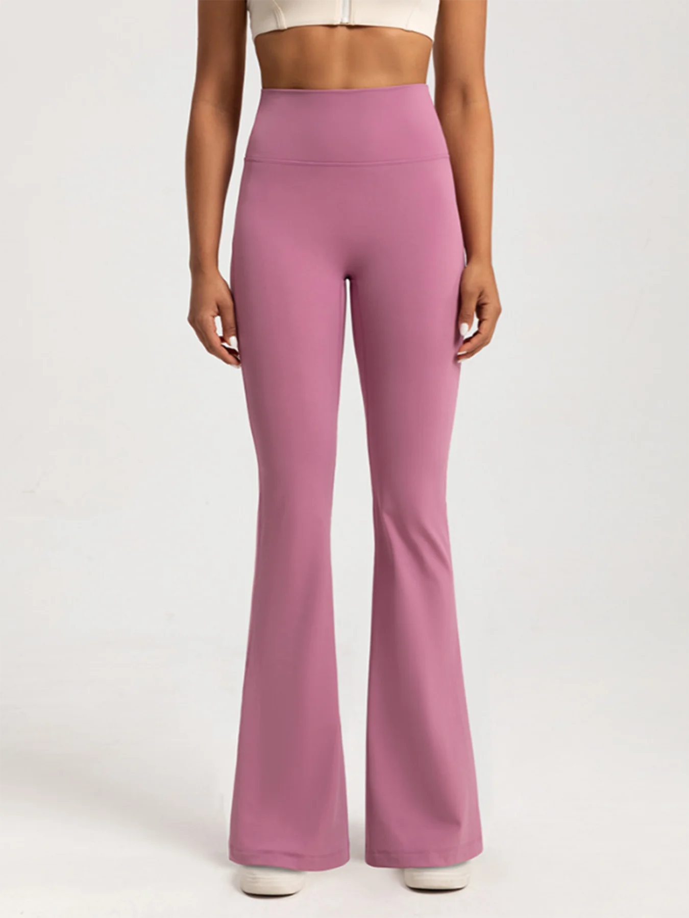 سراويل يوجا واسعة الساق عالية الخصر للسيدات ذات ملمس عاري ورفع البطن والتحكم في تشغيل التمارين الرياضية