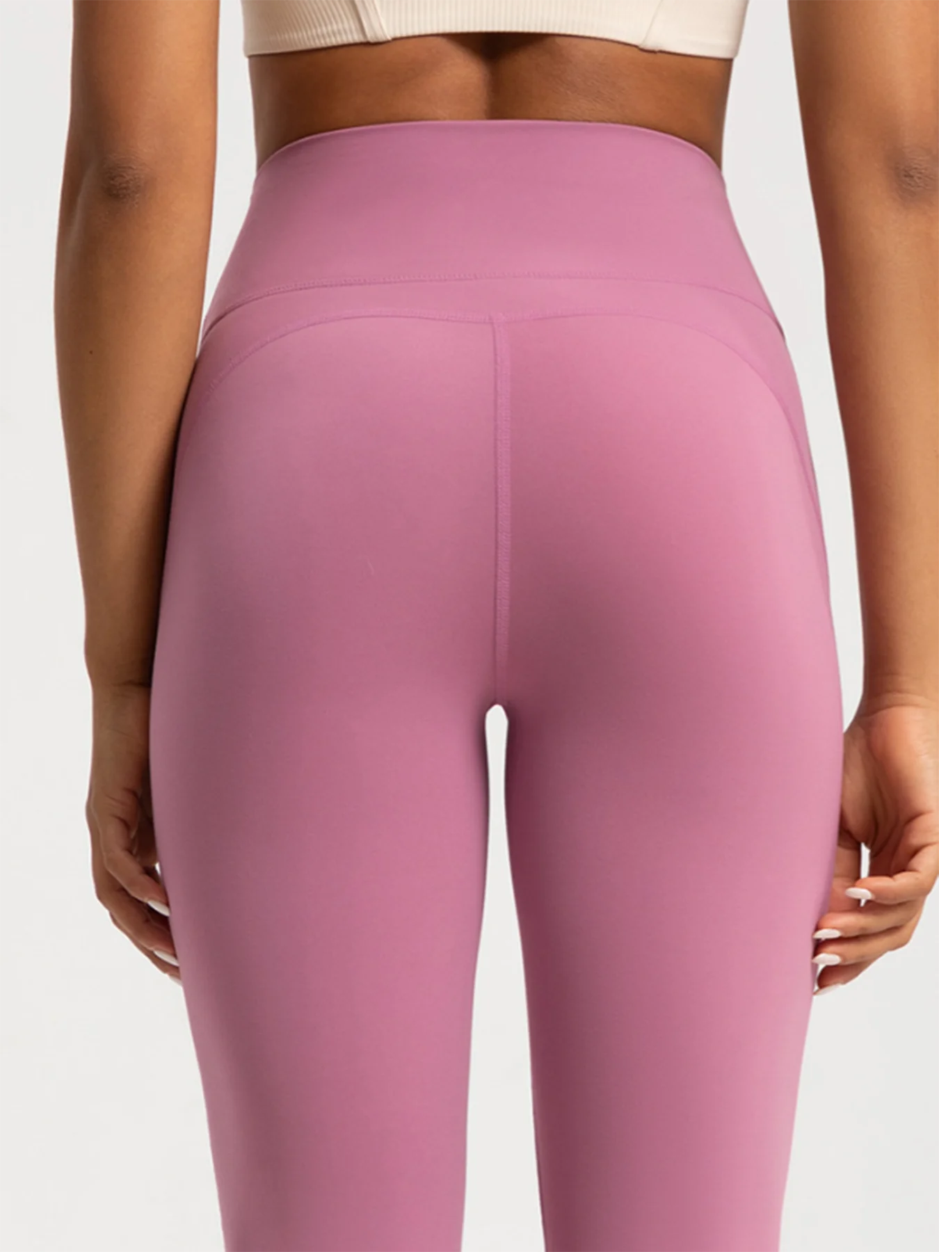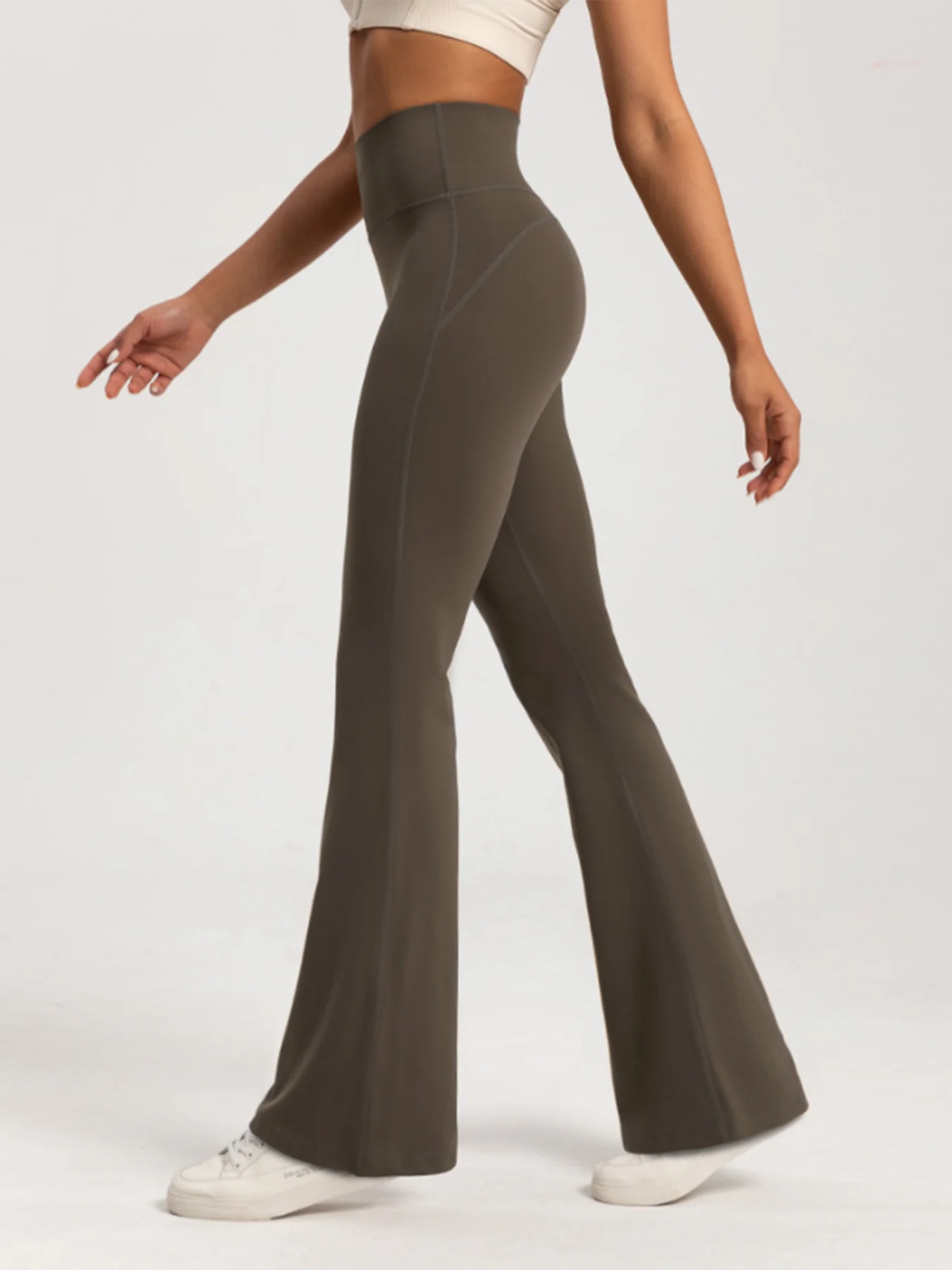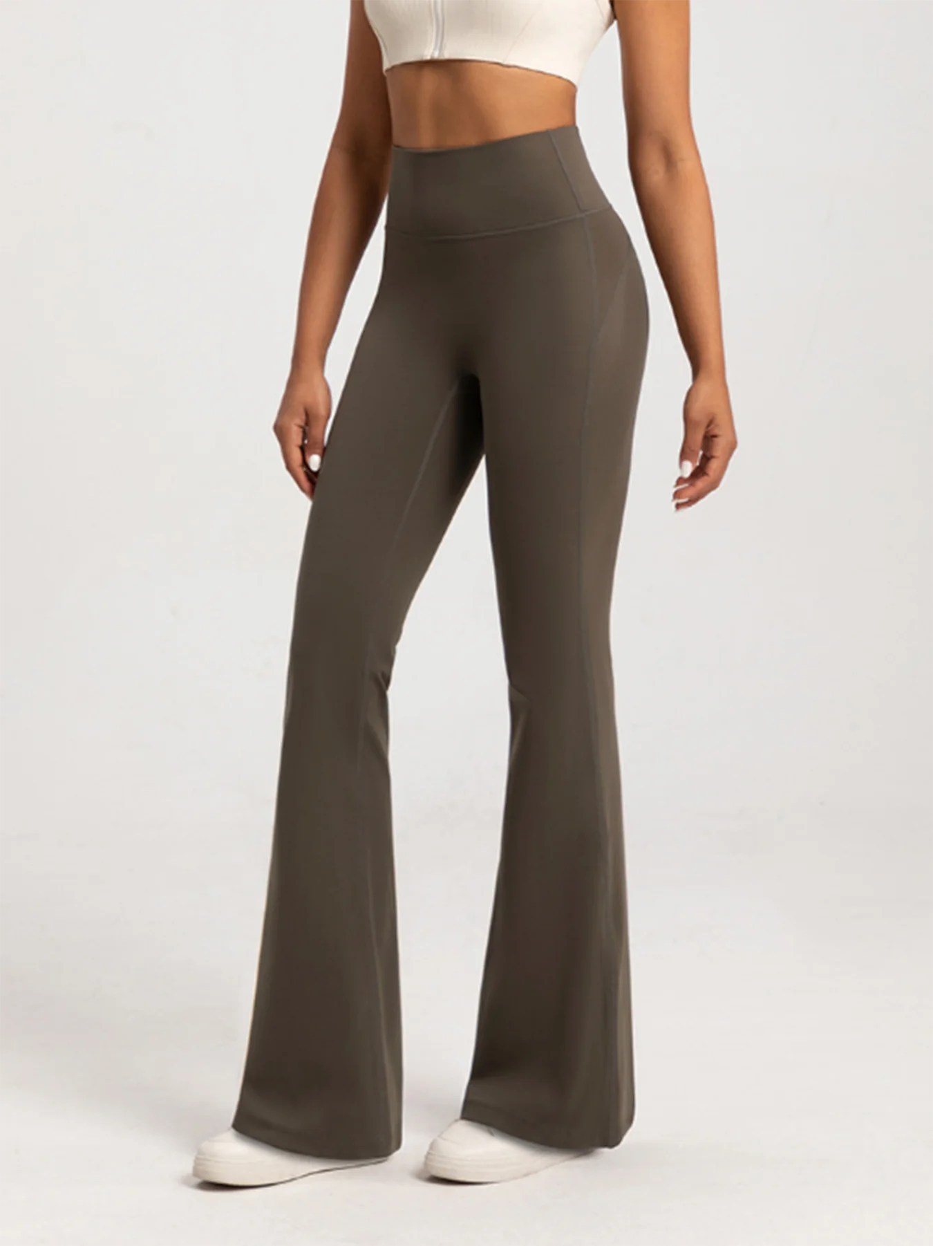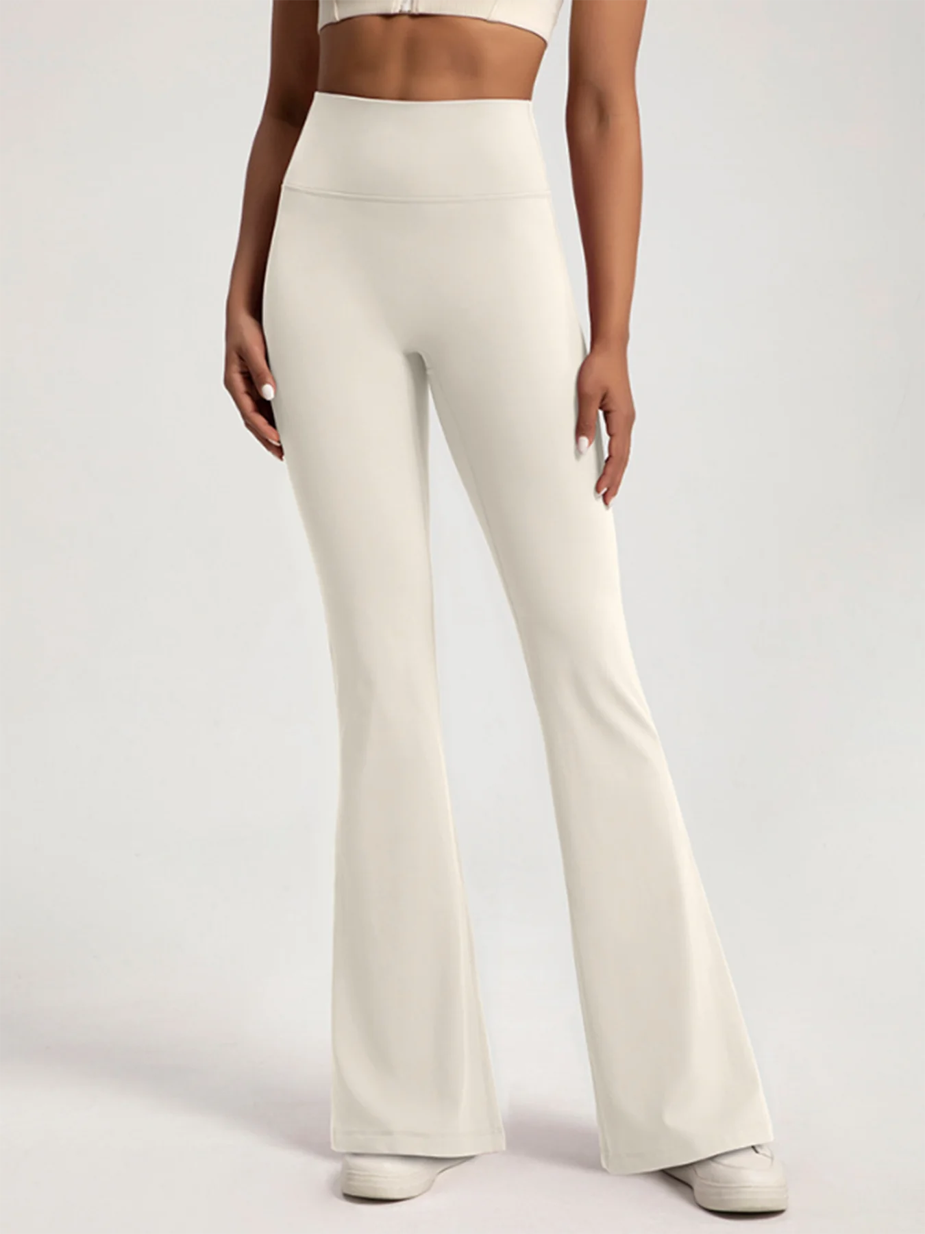 سراويل يوجا واسعة الساق عالية الخصر للسيدات ذات ملمس عاري ورفع البطن والتحكم في تشغيل التمارين الرياضية