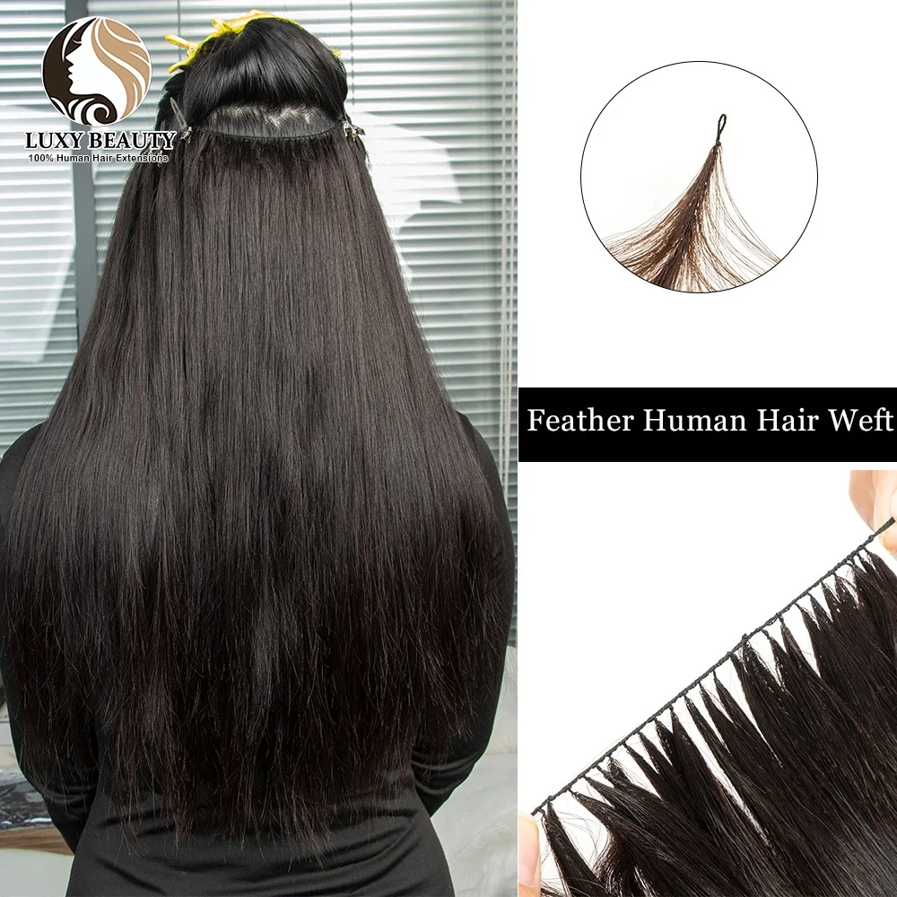 ريشة لحمة حزم الشعر البشري ملحقات خط الصيد الطبيعي غير ريمي حلقات صغيرة غير مرئية الشعر التمديد لحمة 100 جرام 120 السواحل