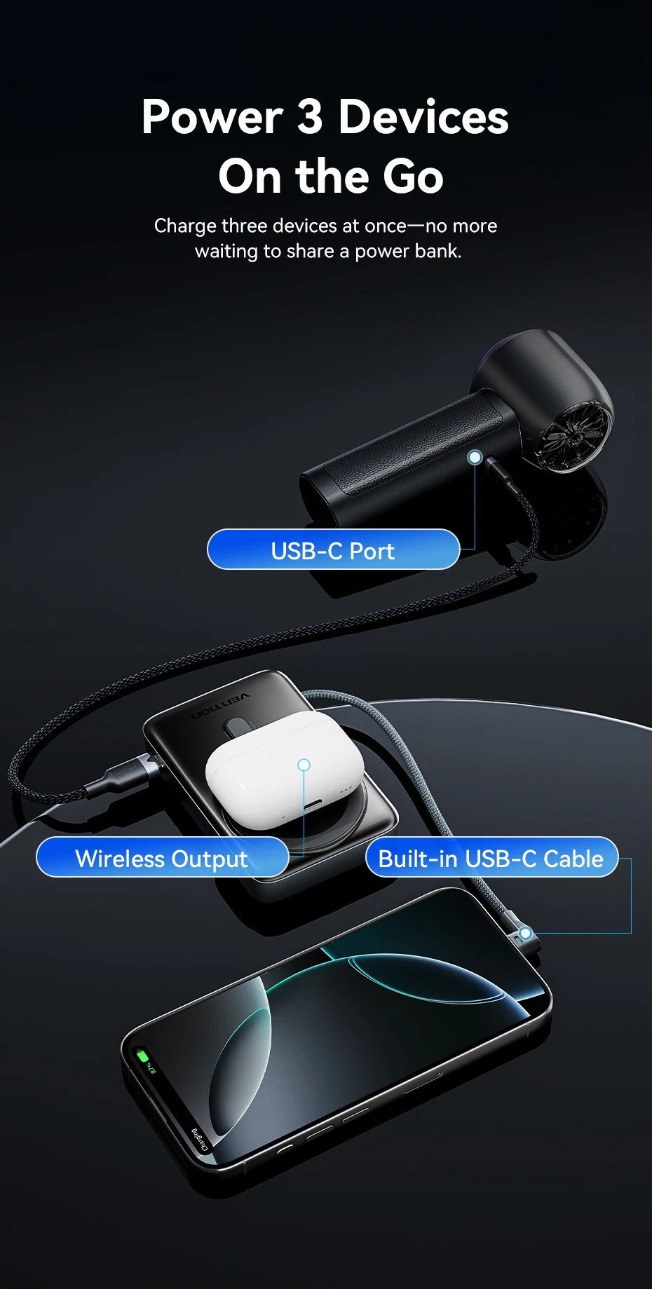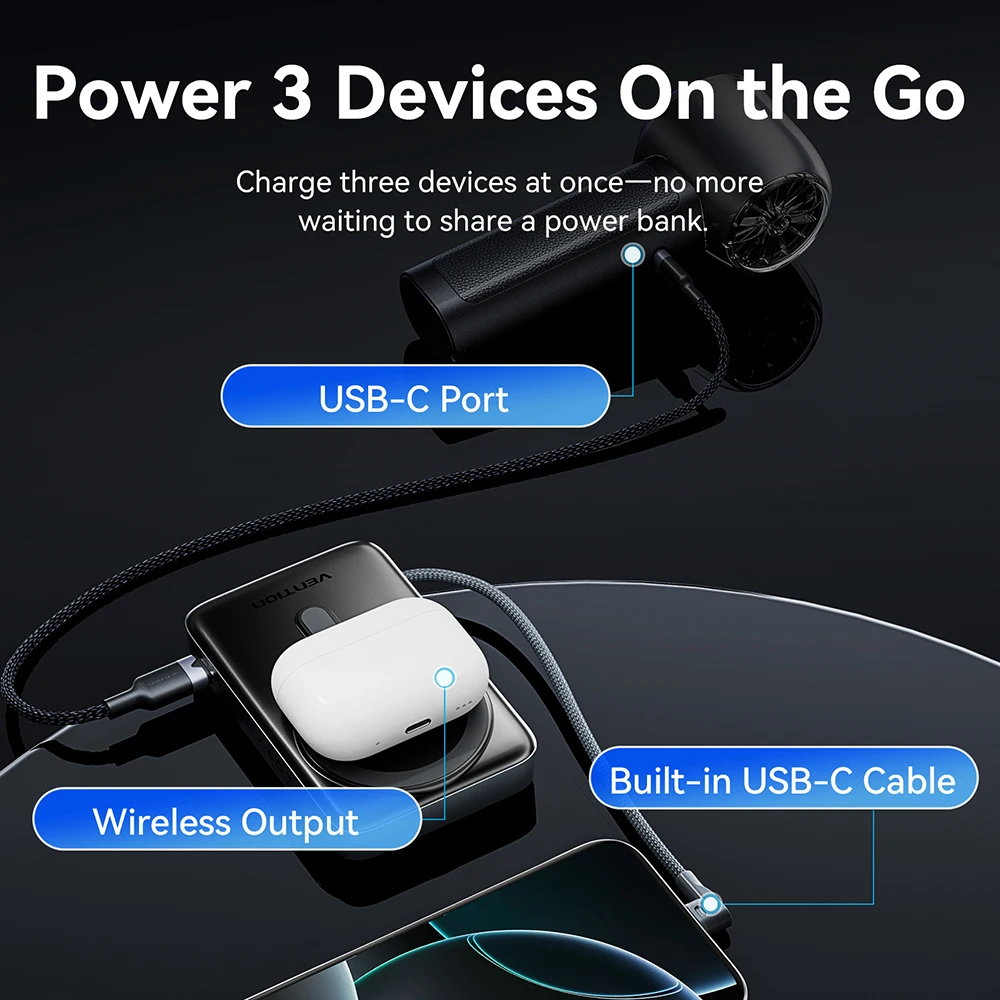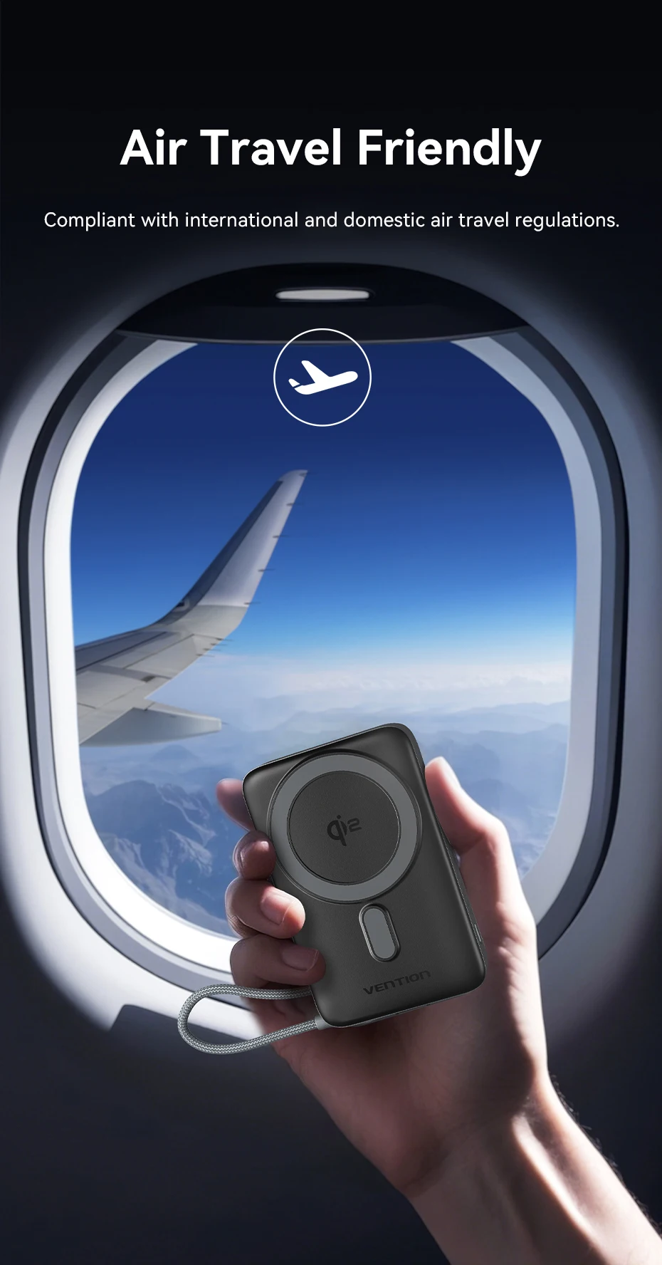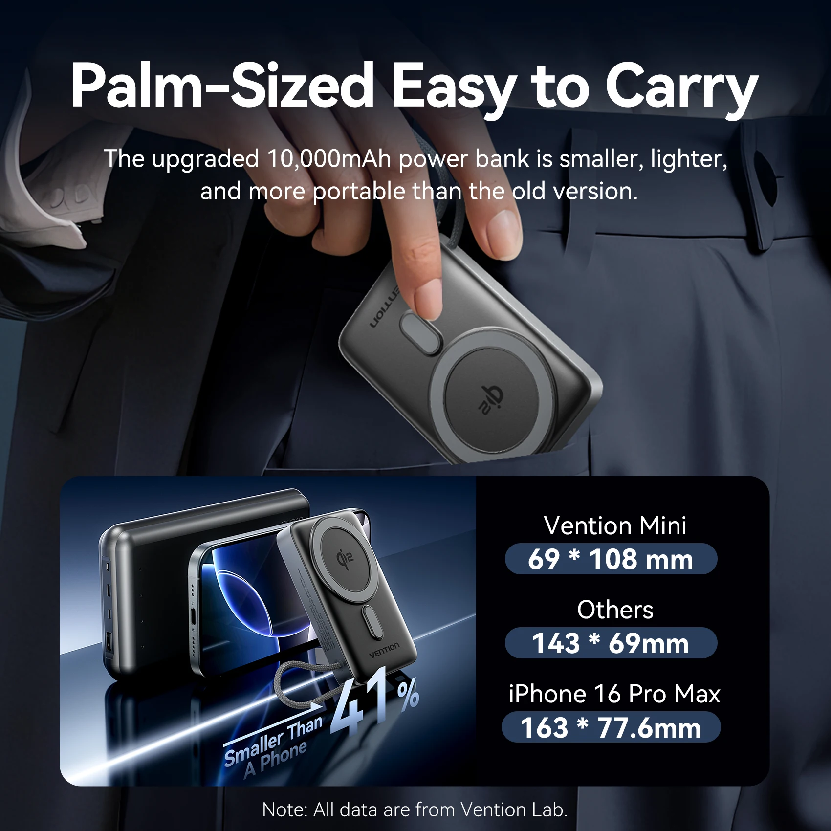 Vention جديد 35 واط Qi2 بنك الطاقة المغناطيسي 10000 مللي أمبير 15 واط شاحن لاسلكي سريع بطارية احتياطية خارجية محمولة آيفون 16 ، 15 ، 14
