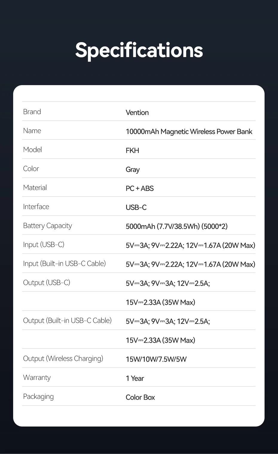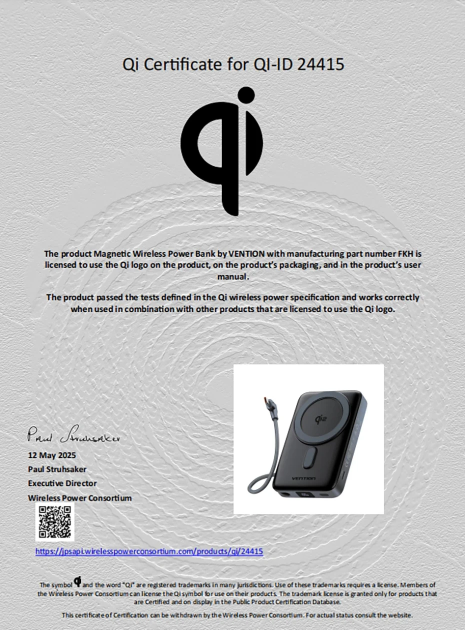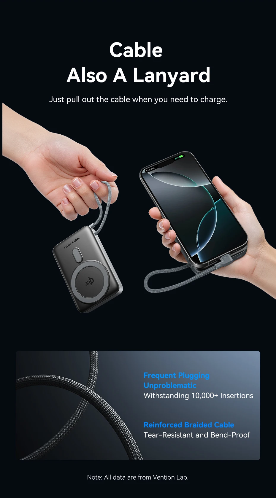 Vention جديد 35 واط Qi2 بنك الطاقة المغناطيسي 10000 مللي أمبير 15 واط شاحن لاسلكي سريع بطارية احتياطية خارجية محمولة آيفون 16 ، 15 ، 14