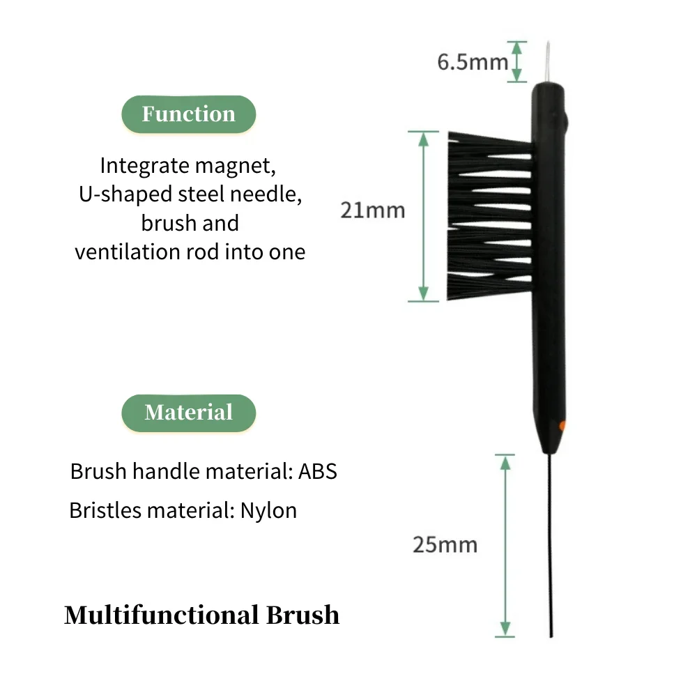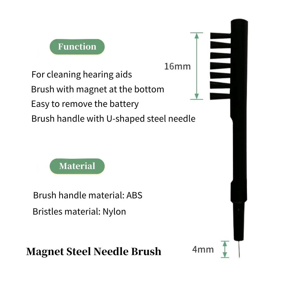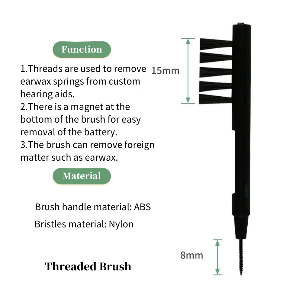 أداة تنظيف متعددة الوظائف.قم بإزالة أي شمع أو بقايا جلدية من سطح أدوات السمع.