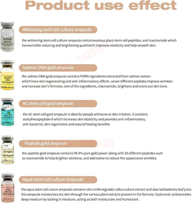 تعتبر الأمبولة الذهبية للخلايا الجذعية AC مثالية للأشخاص الذين يعانون من حب الشباب أو تهيج الجلد، فهي تحتوي على الأسيتيل هيكسابيبتيد -8 الذي يزيد من مرونة الجلد ويوفر فوائد مضادة للالتهابات ومضادة للبكتيريا وتجديد الجلد وشفاء الجروح.