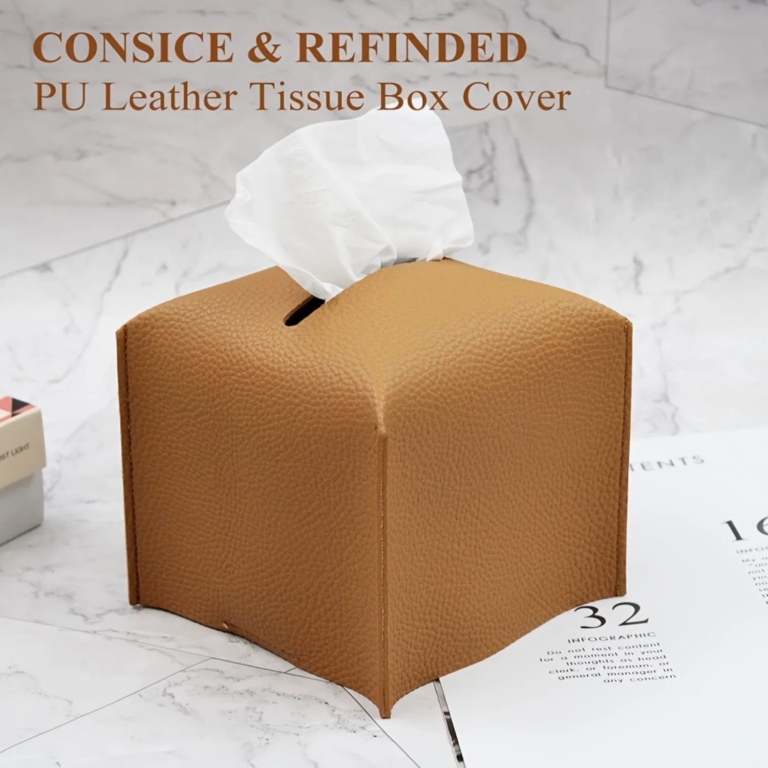 3.ابق منظمًا وأنيقًا مع غطاء صندوق المناديل الأنيق هذا.مصنوع من جلد البولي يوريثان، هذا الحامل المربع مثالي للحفاظ على مناديلك أنيقة ومرتبة على منضدة حمامك، أو سطح الطاولة، أو الحوامل الليلية، أو مكتبك، أو في سيارتك.التصميم المغطى يحافظ على الأنسجة محمية ويمكن الوصول إليها بسهولة.