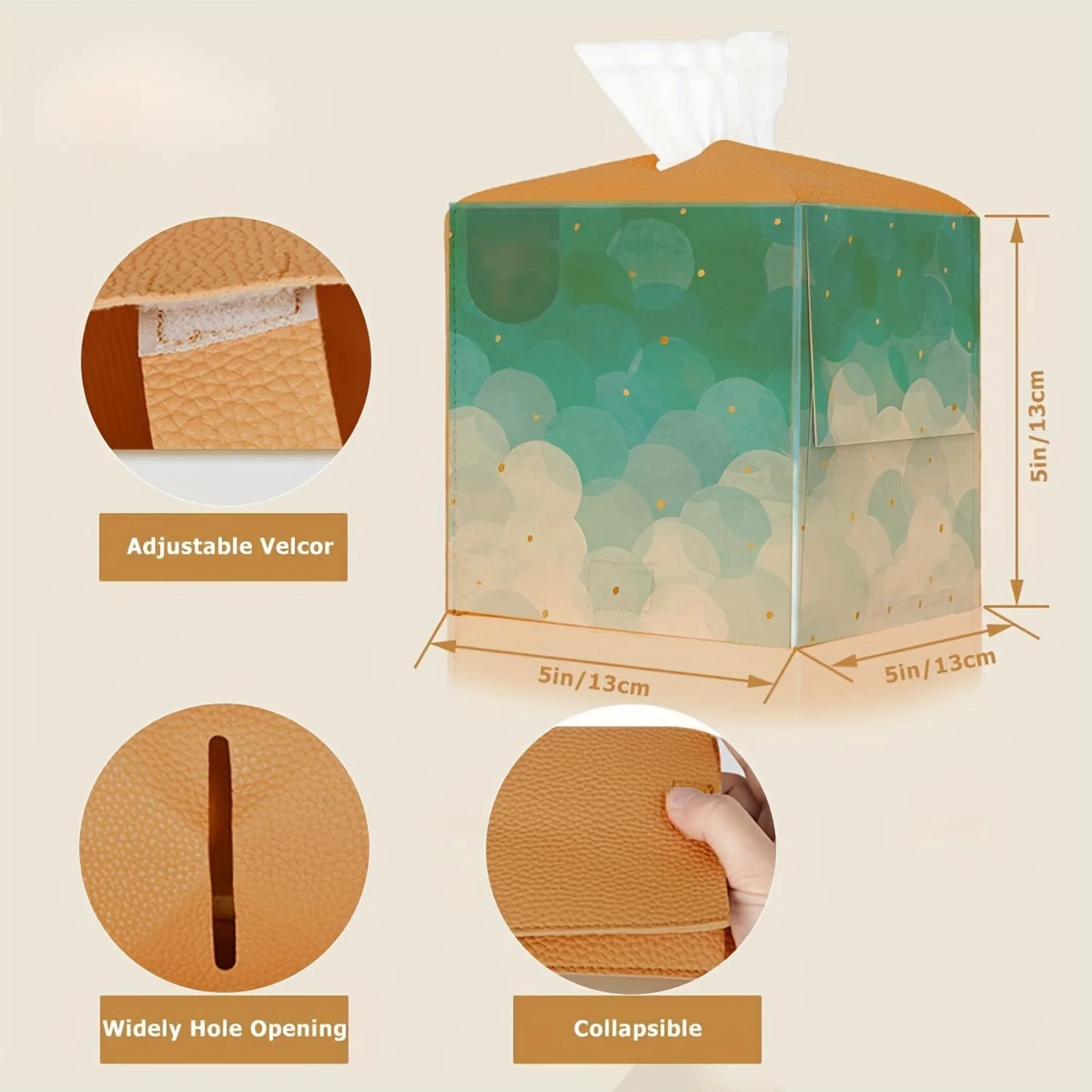 5.أضف لمسة من الرقي إلى منزلك أو مكتبك مع غطاء علبة المناديل متعدد الاستخدامات هذا.مصنوع من جلد البولي يوريثان، هذا الحامل المربع مزخرف وعملي.استخدمه في المطبخ أو الحمام أو غرفة النوم أو المكتب أو السيارة للحفاظ على الأنسجة منظمة ويمكن الوصول إليها بسهولة.النمط المعاصر والتصميم المغطى يجعله إكسسوارًا لا بد منه.