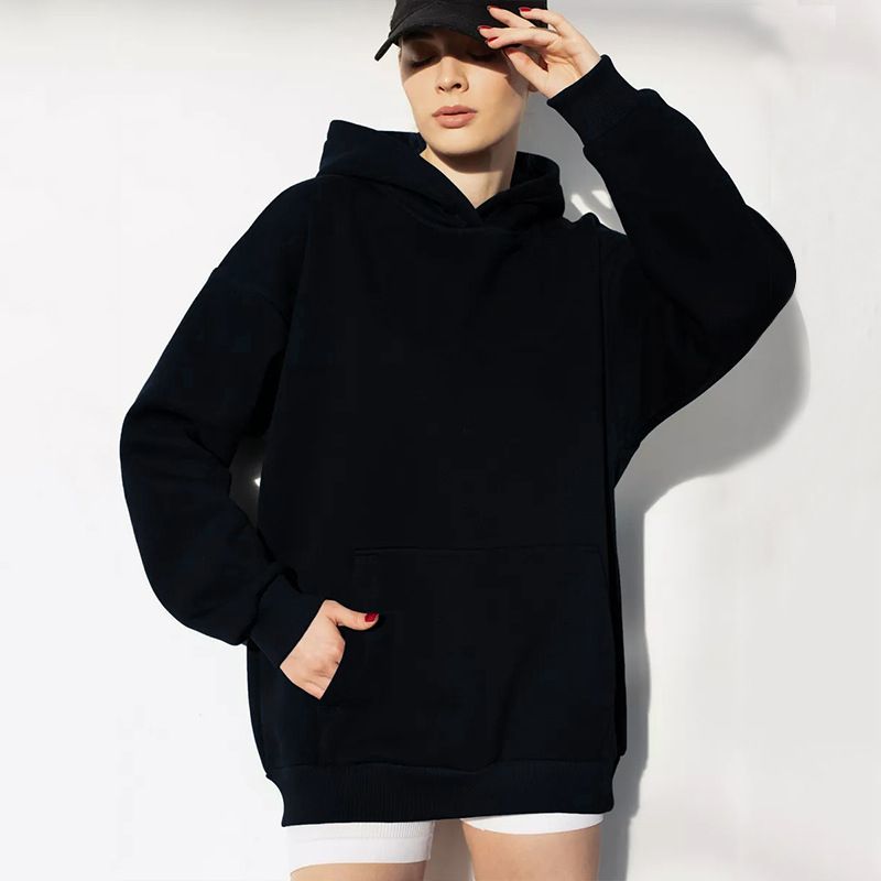 العربية: قطعة علوية فضفاضة للاستخدام اليومي مع هودي طويلة الأكمام بقبعة للنساء لخريف وشتاء 2024