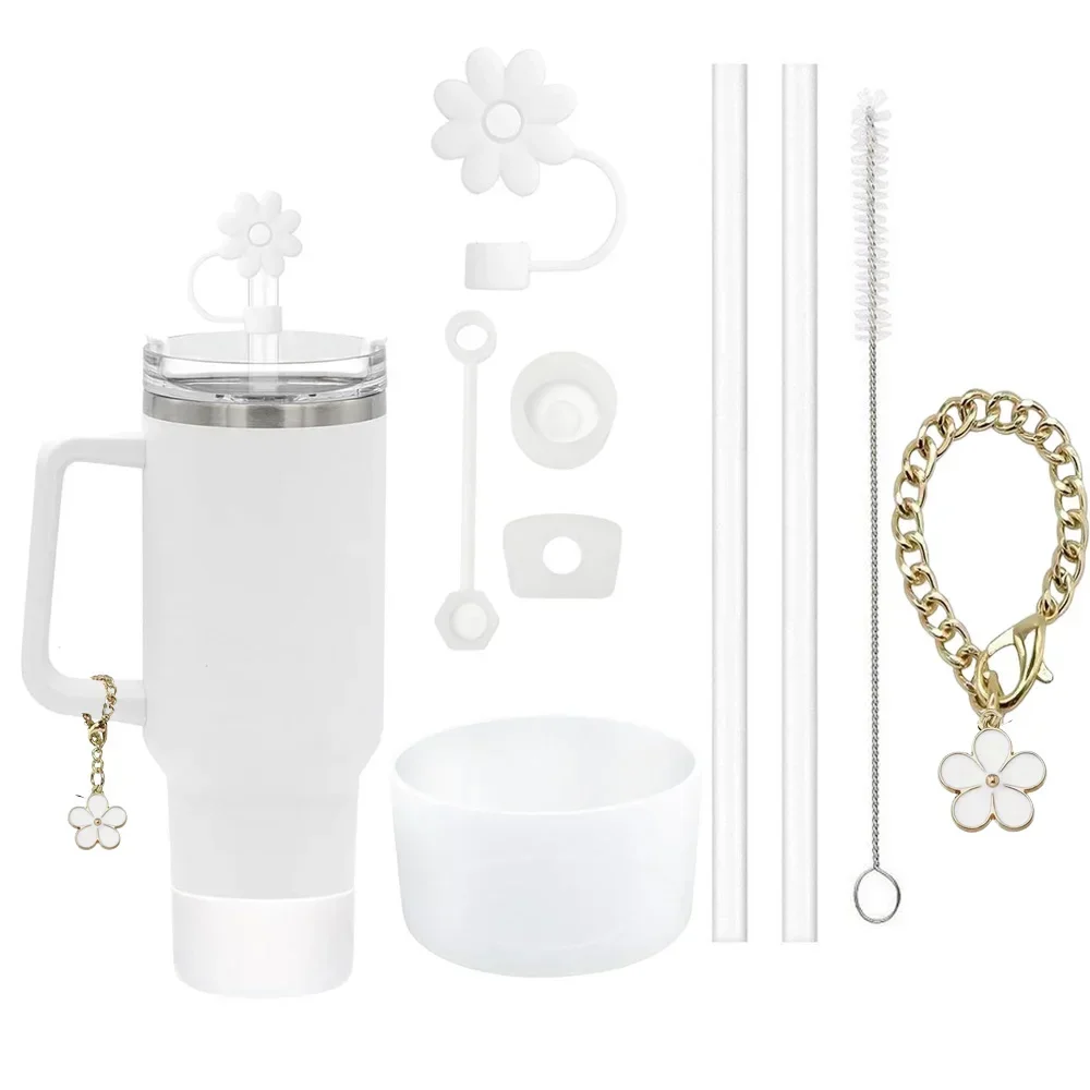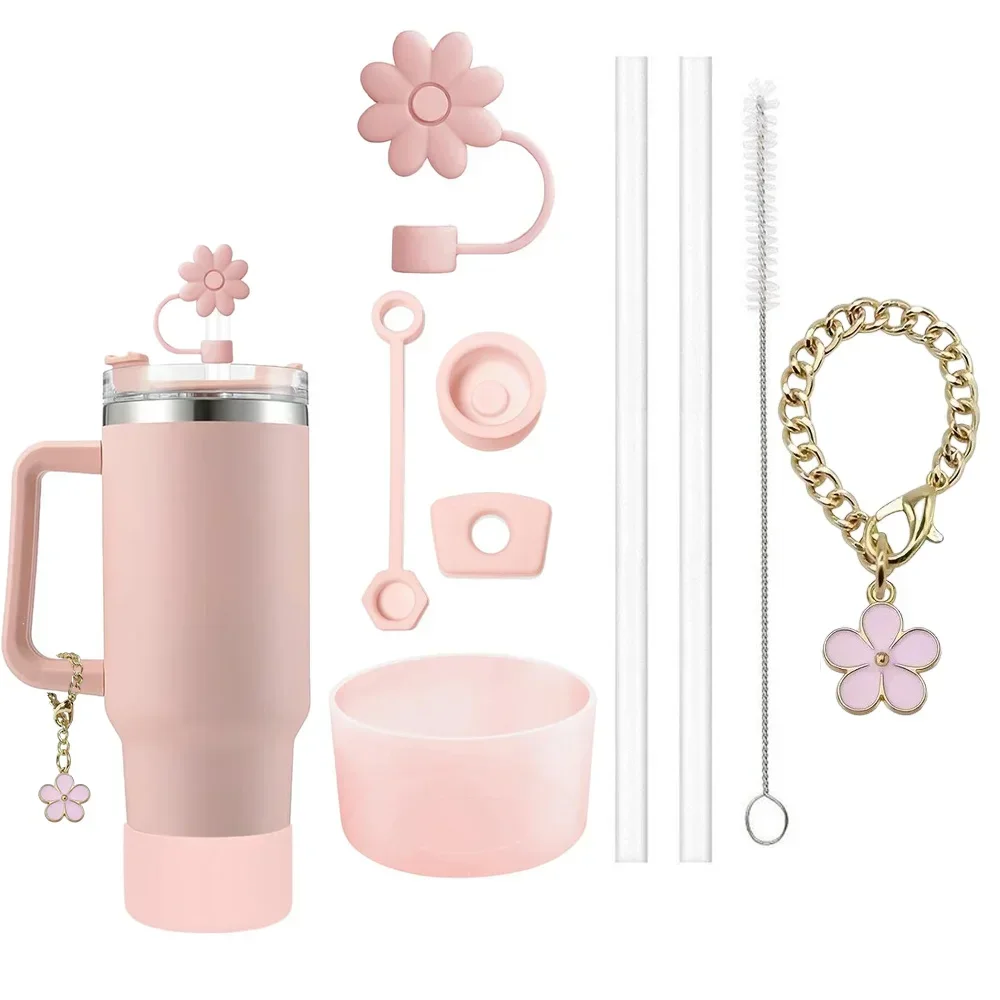 9 قطعة مجموعة اكسسوارات 3 انسكاب برهان سدادة الزهور غطاء من القش التمهيد 2 القش وفرشاة و 1 زهرة سلسلة سحرية لكأس ستانلي