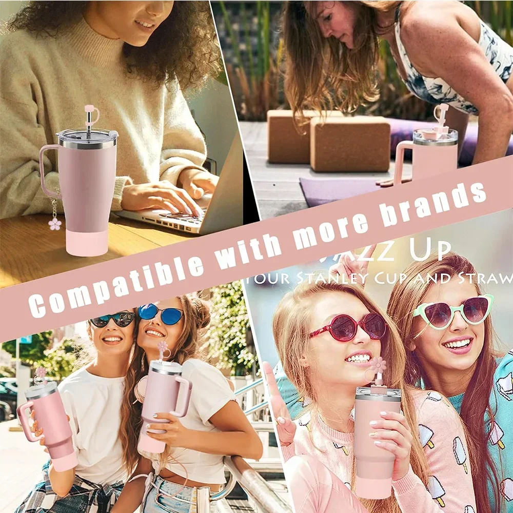 9 قطعة مجموعة الملحقات 3 سدادة مقاومة للانسكاب الزهور غطاء من القش التمهيد 2 القش وفرشاة و 1 سلسلة حلية على شكل زهرة لكأس ستانلي ...
