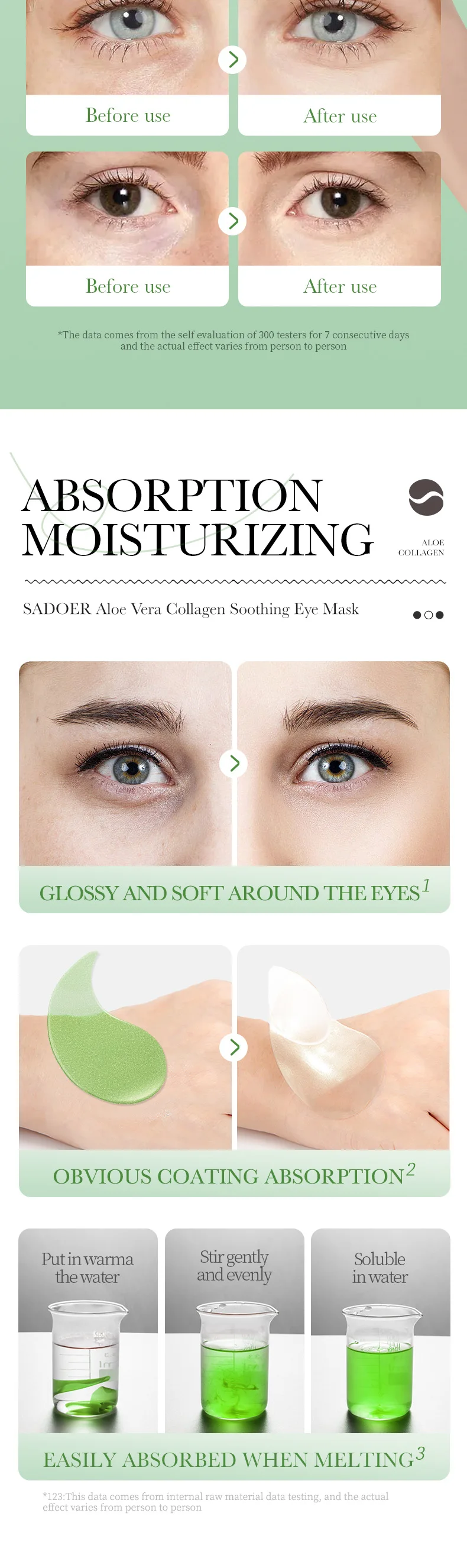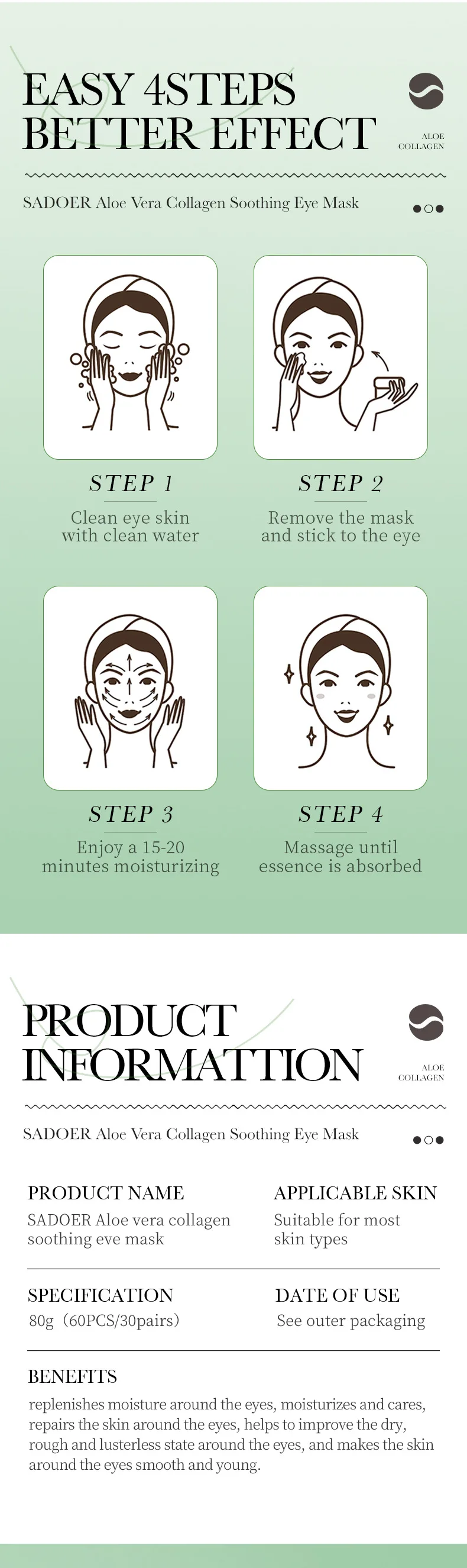 الميزات: ترطيب وترطيب منطقة العين، وإزالة قناع العين الجاف