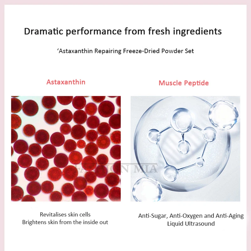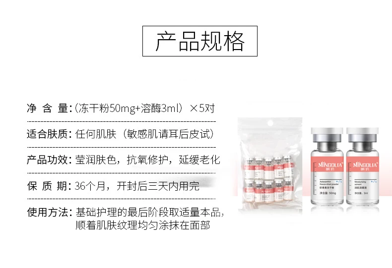 Astaxanthin Repairing Freeze-Dried Powder SetNet Content:1 bottle*Lyophilised Powder 50mg+1 bottle*Lysozyme 3mlSuitable for skin type: any skin (sensi...