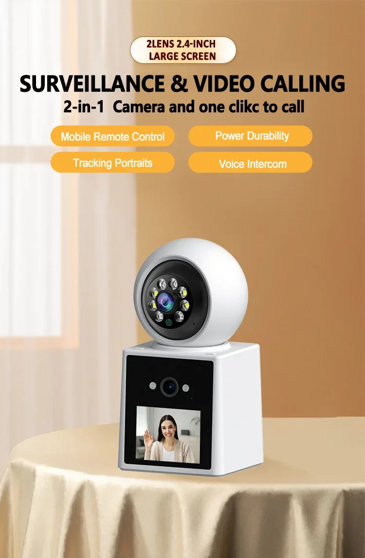 كاميرا فيديو ذكية 2.4 بوصة 1080P 3MP اتصال داخلي بزر واحد ثنائي الاتجاه 360 ° PTZ الأشعة تحت الحمراء للرؤية الليلية مراقبة المنزل مكالمة فيديو