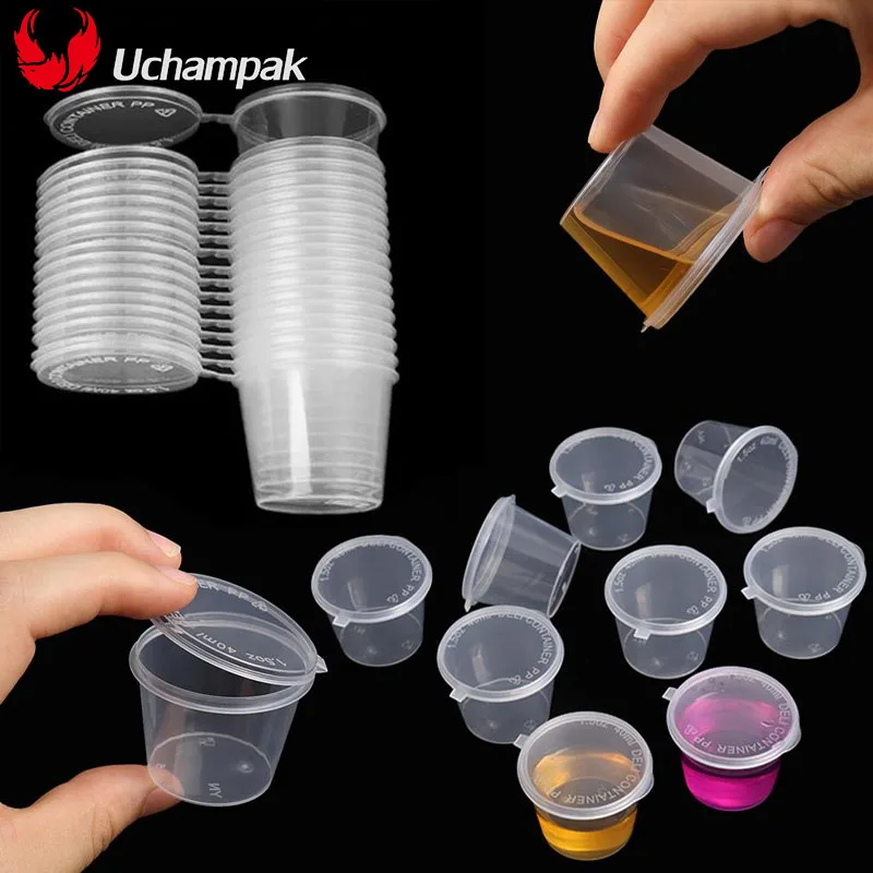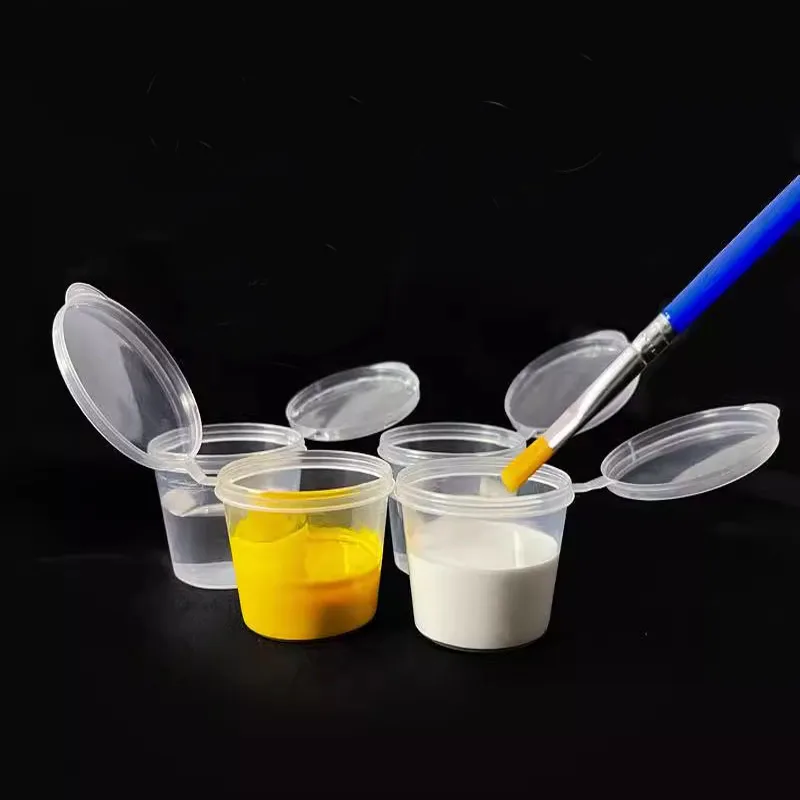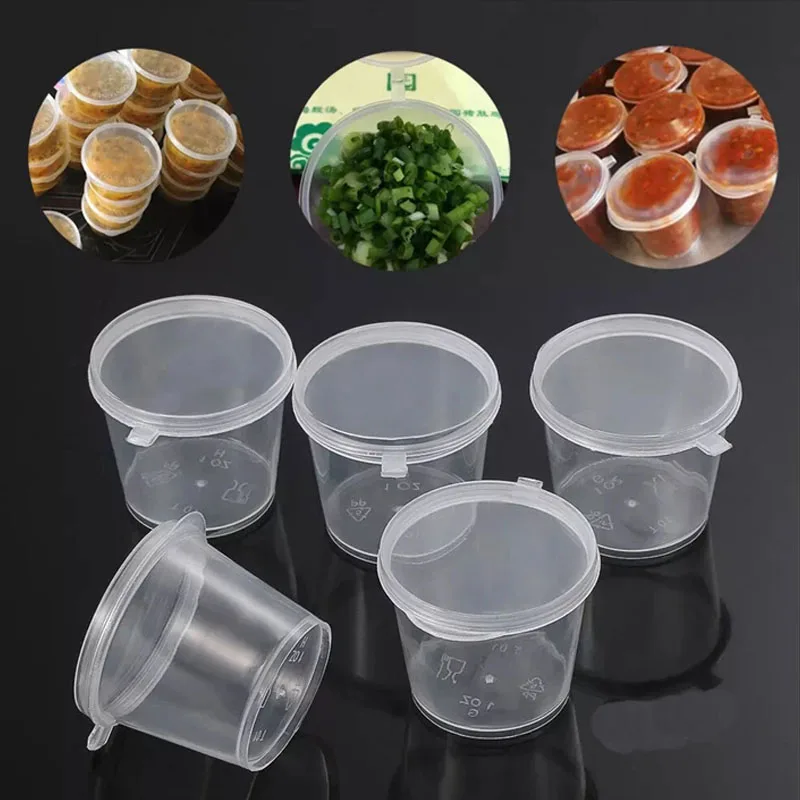 1 أوقية البلاستيك الوجبات الجاهزة كوب حفظ الصلصة حاويات عبوة طعام مع أغطية مفصلية الصباغ صندوق الطلاء لوحة تكويم محكم صندوق يمكن التخلص منه
