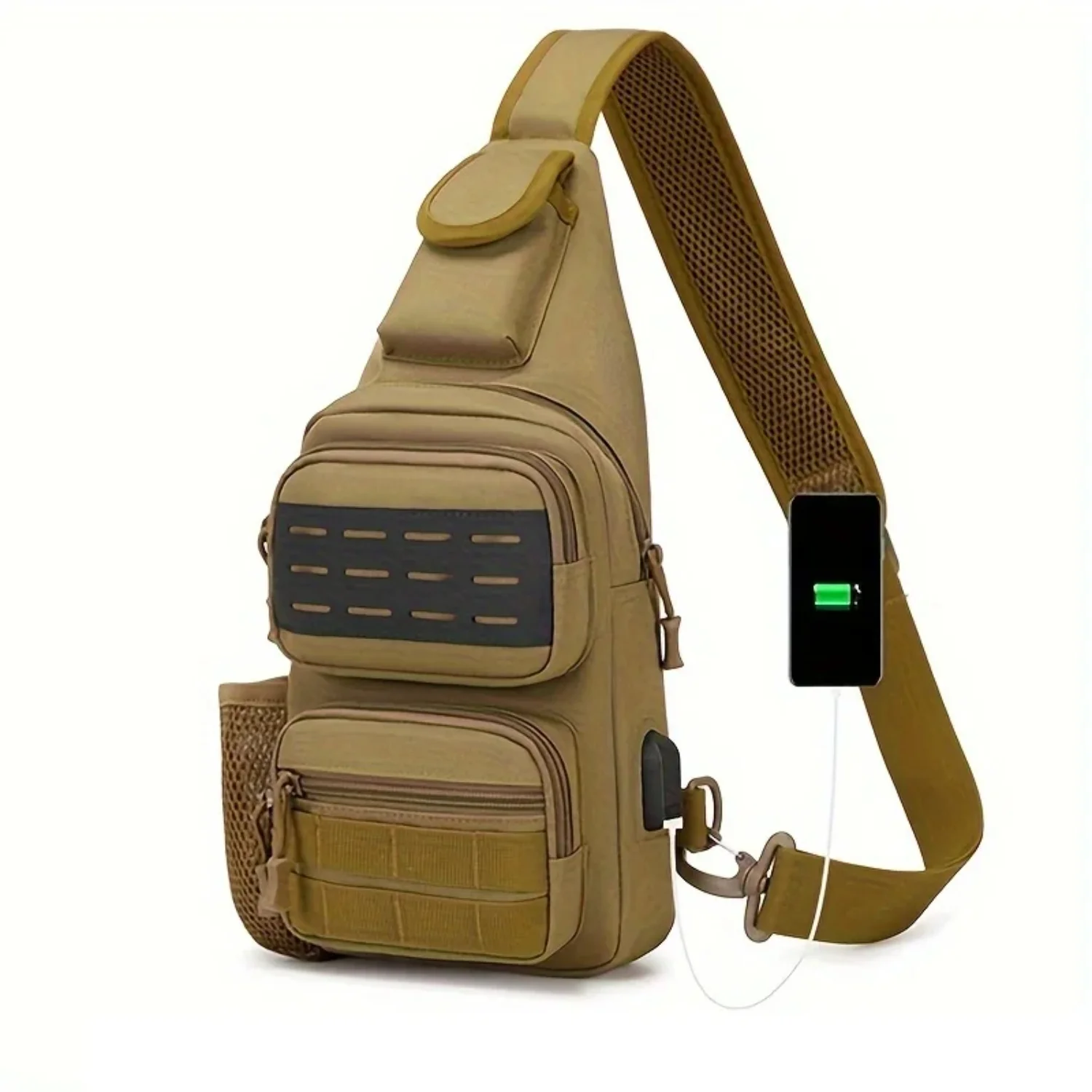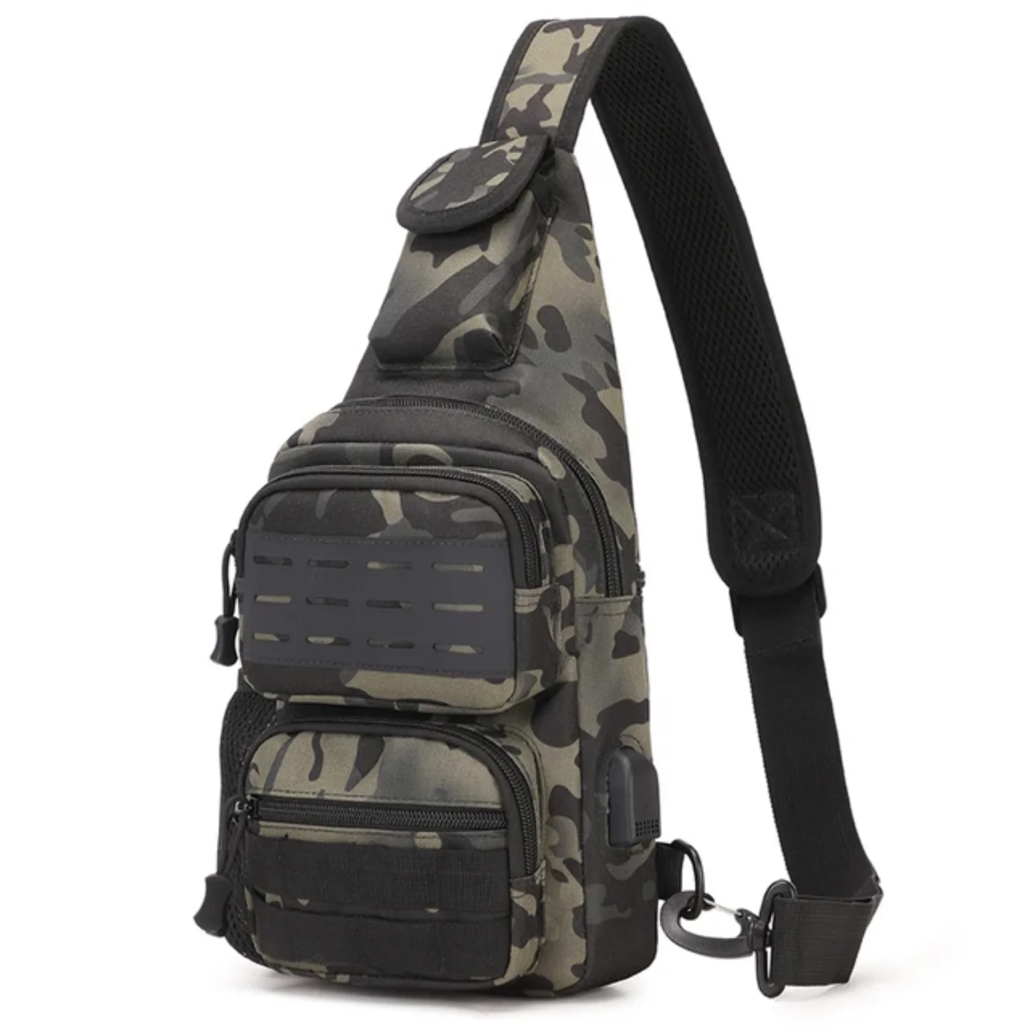 الرجال USB التكتيكية الصدر متعددة الوظائف الصيد الرافعة في الهواء الطلق كامو السفر التخييم تسلق حقيبة كتف حقيبة يد