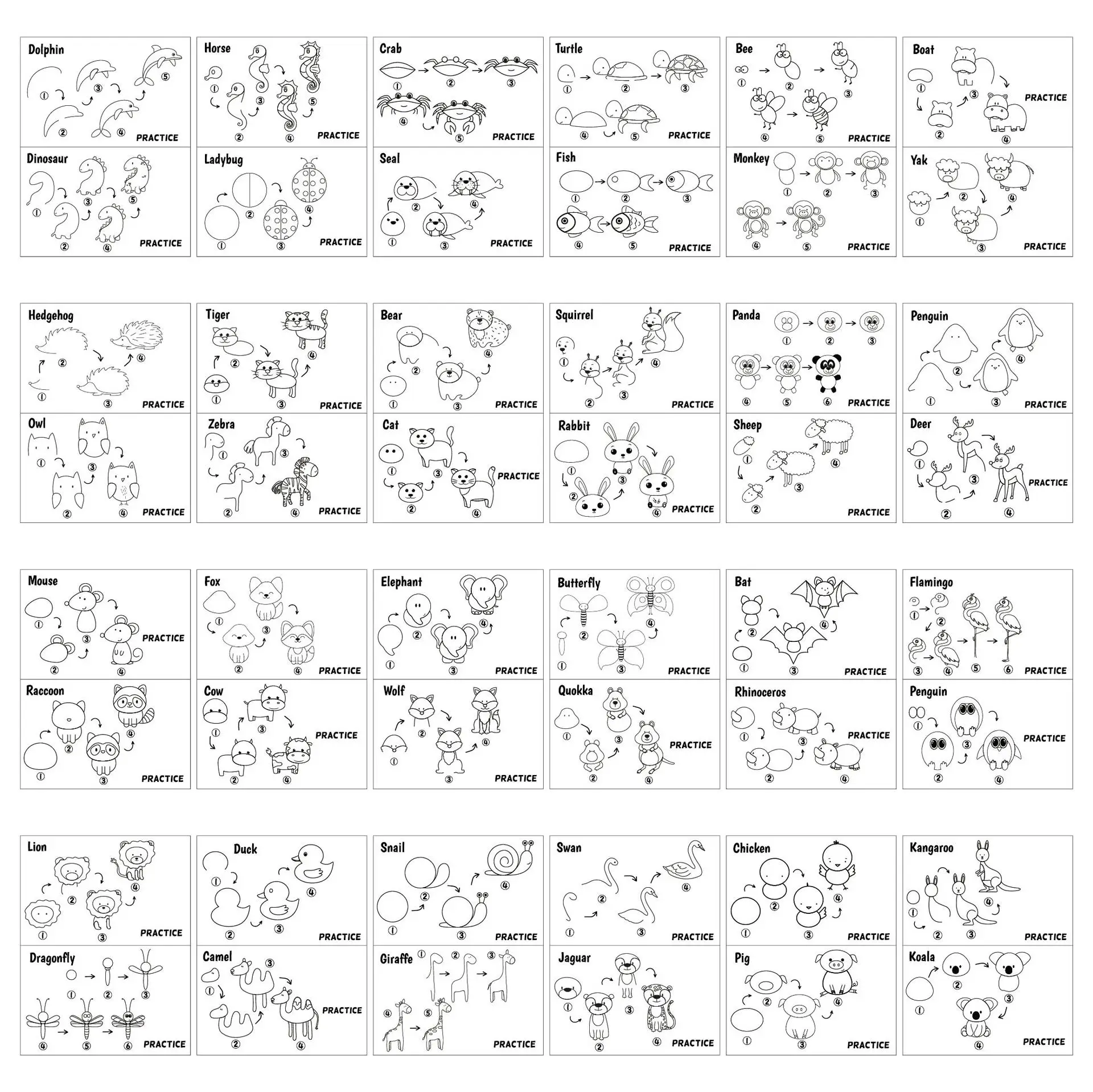 كتاب رسم تخليقي بسيط على شكل رسوم متحركة على شكل حيوانات، كتاب تلوين تعليمي للتعلم المبكر للطلاب