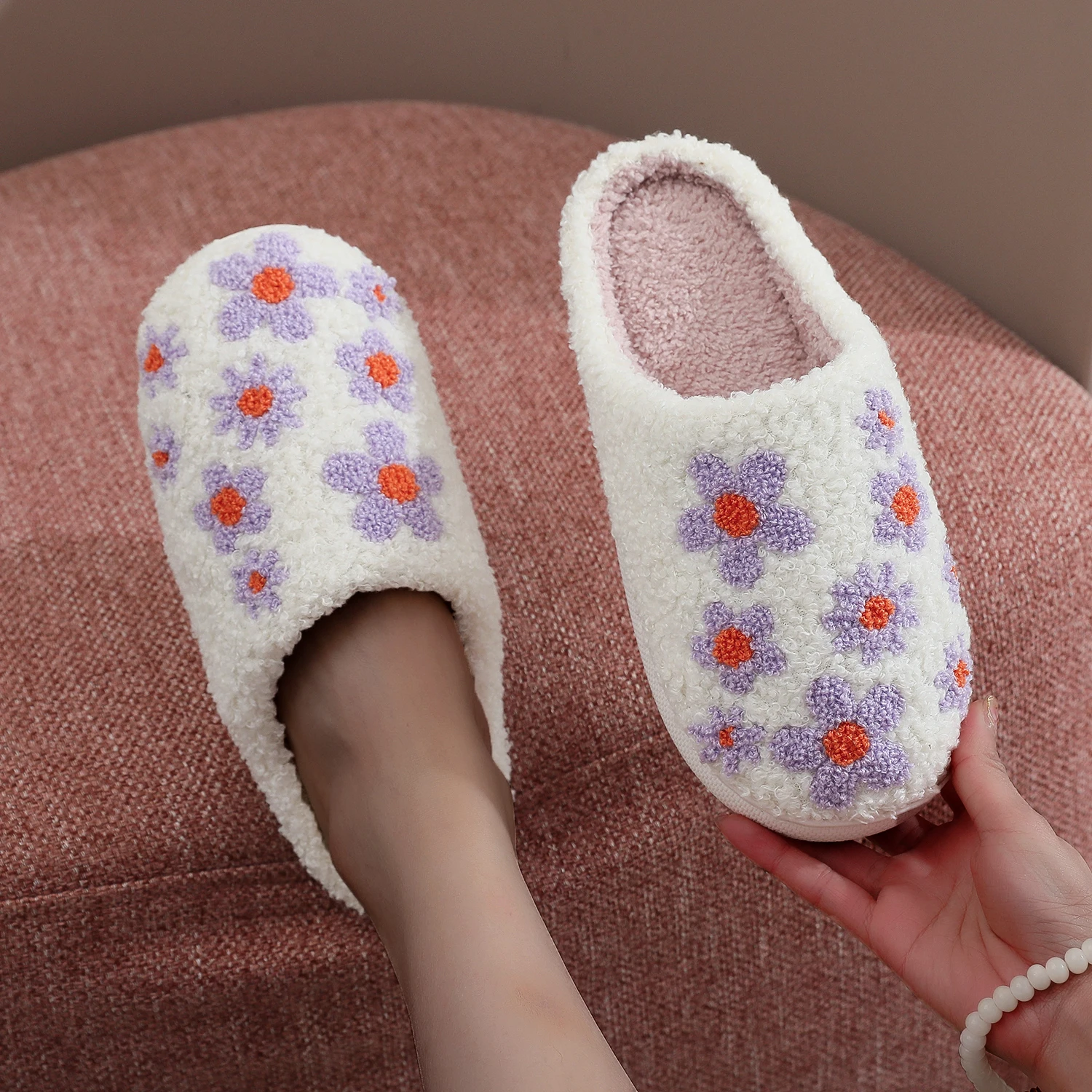نعال قطنية أرجوانية للمنزل ، قاعدة سميكة ، مانعة للإنزلاق ، دافئة ، زهور ، صغيرة ، طازجة ، شتاء ، منزل