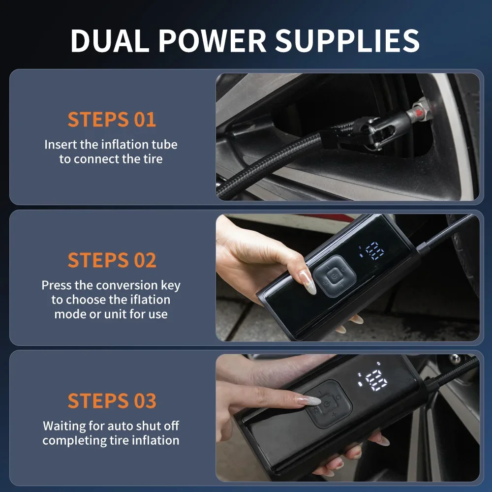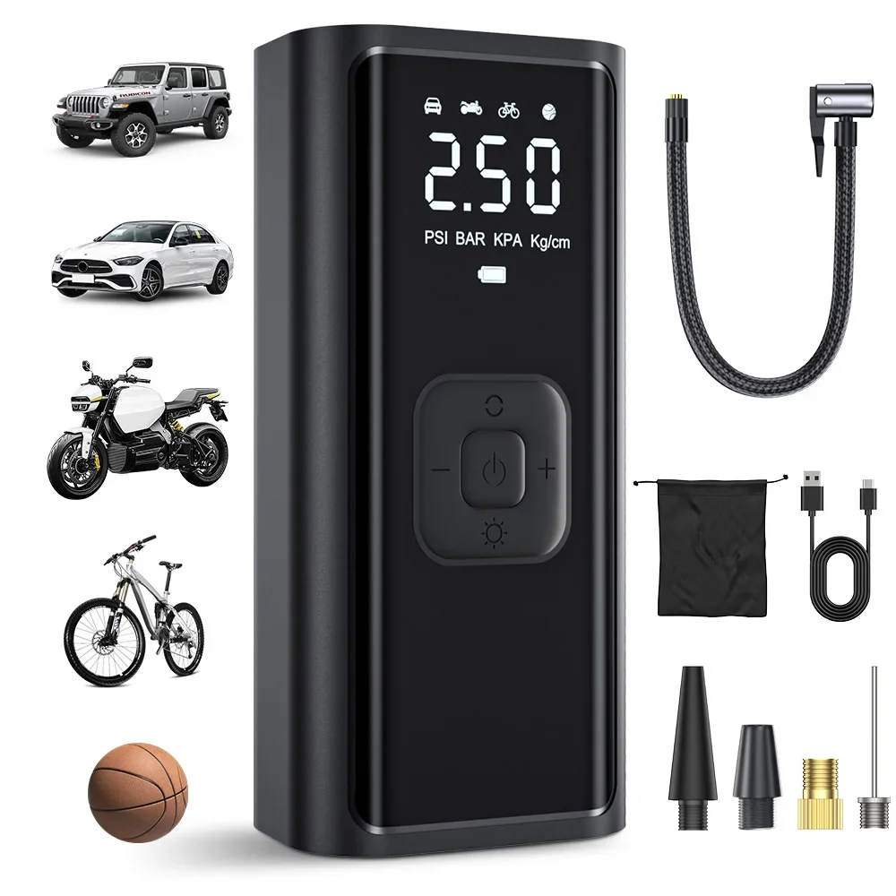 مضخة ضاغط نافخة محمولة مع مصباح LED لسيارة دراجة نارية إطار دراجة كرات سيارة كهربائية لاسلكية مضخة إطار هواء