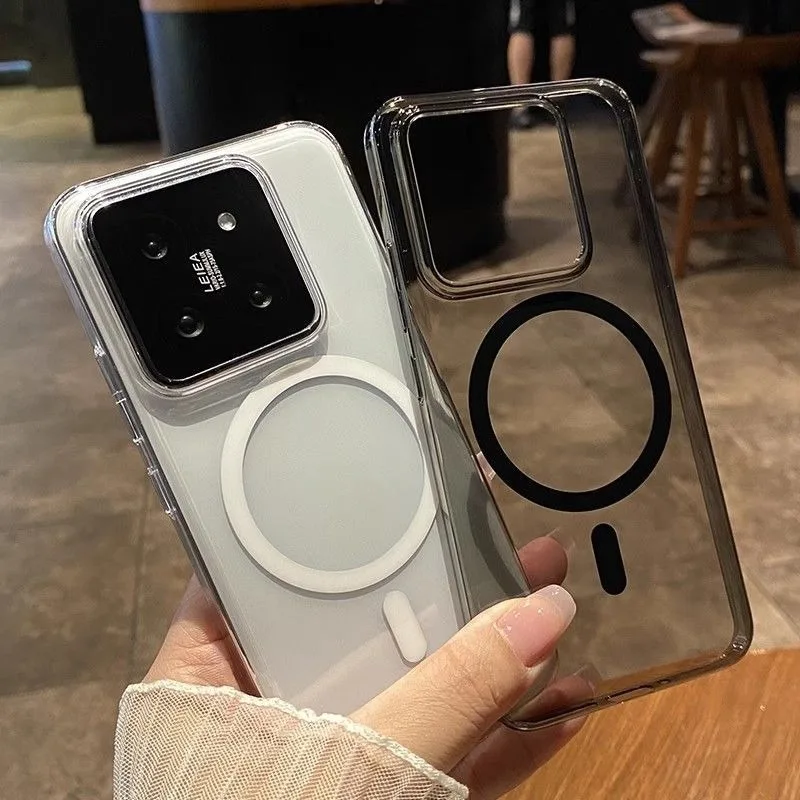 حافظة Magsafe شفافة عالية الوضوح لهاتف Xiaomi Mi 15 14 13 غطاء شحن لاسلكي مغناطيسي رفيع للغاية لهاتف Xiaomi 13 14 15 Pro