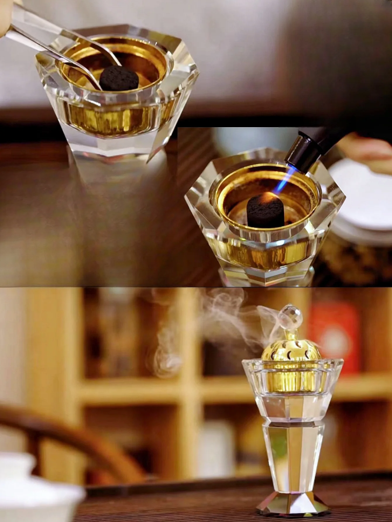مبخرة بخور كريستال للديكور المنزلي ، موزع عربي ، بخور ، مبخرة راتنج ، زخرفة عطرية ، تأمل يوغا ، مجموعة واحدة