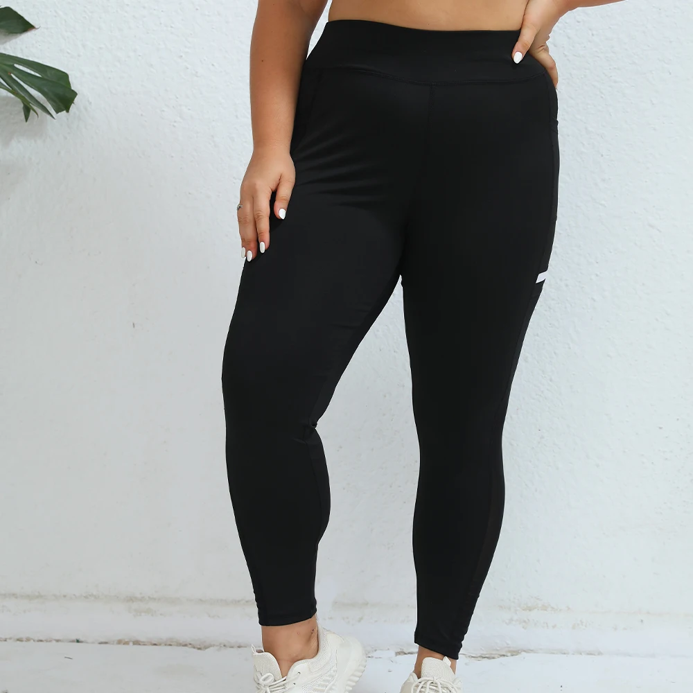 حجم كبير النساء اليوغا السراويل مع جيوب شبكة إدراج شريط أبيض عالية الخصر طماق للياقة البدنية الجري جوارب رياضية 0XL-4XL