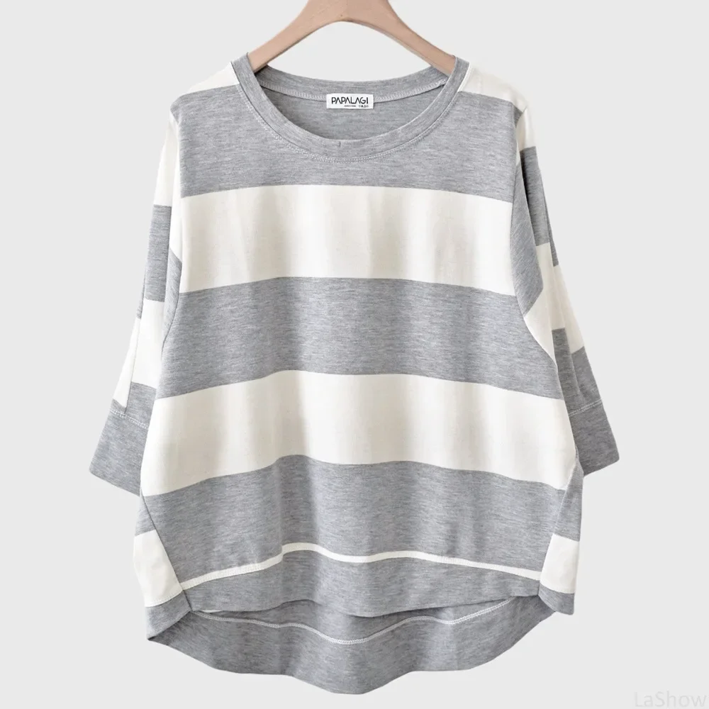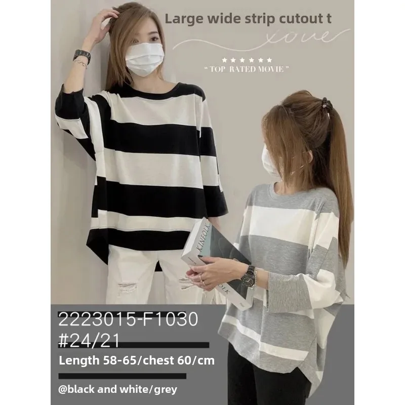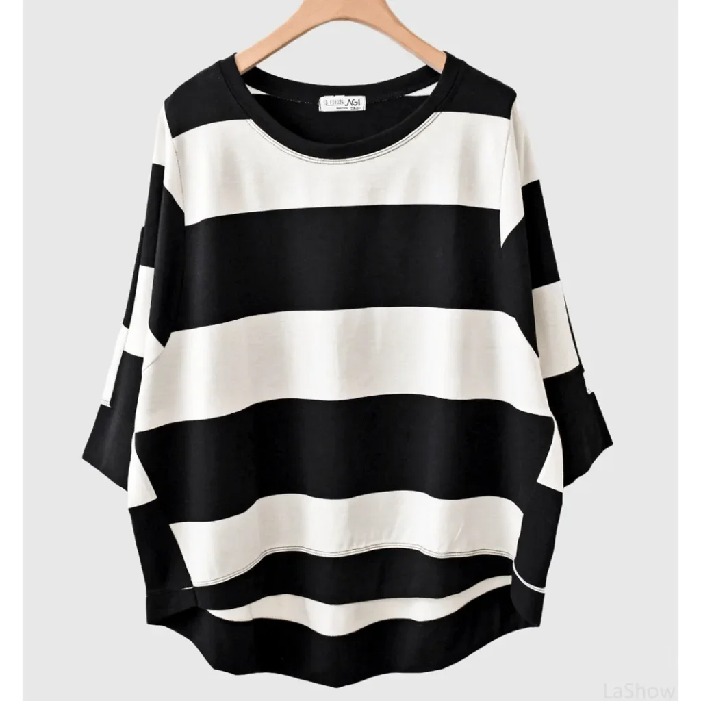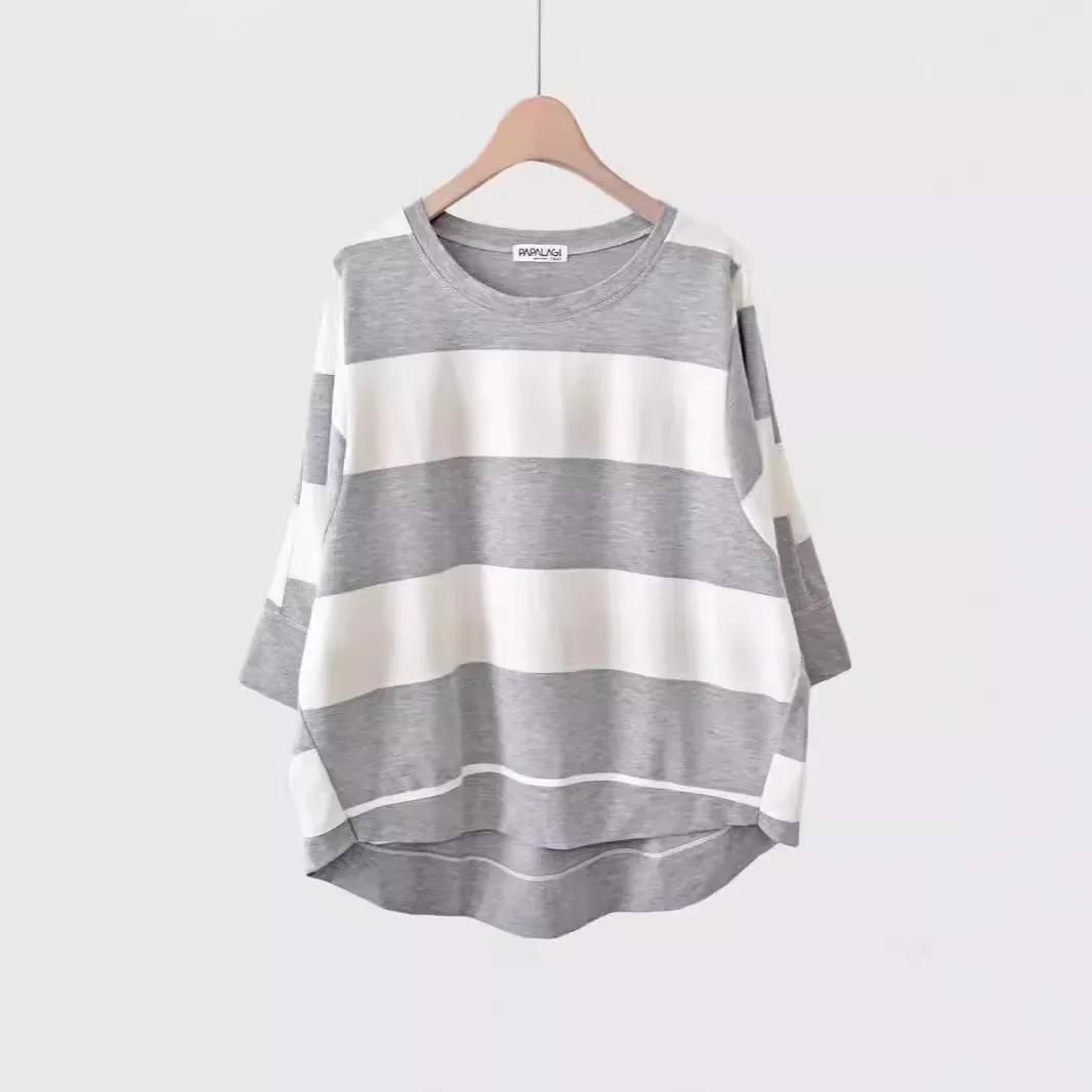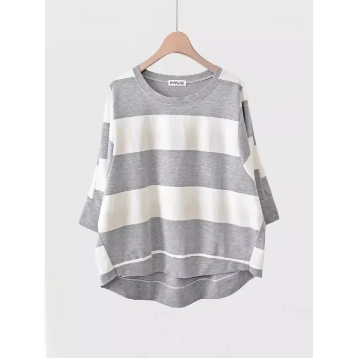 رائجة البيع للموسم جديد الترفيه مخطط رقيقة هوديي فضفاض كسول نمط سبعة كم تي شيرت علوي المرأة موضة البوليستر طاقم