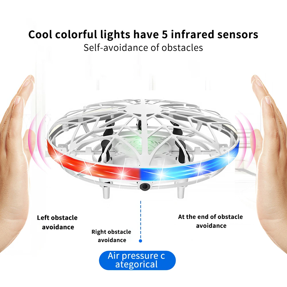 12 سنتيمتر صغيرة ملونة UFO الطائرة بدون طيار مع مصباح ليد استشعار لفتة جيب المحمولة كوادكوبتر نموذج الكهربائية drohne لعب للأطفال