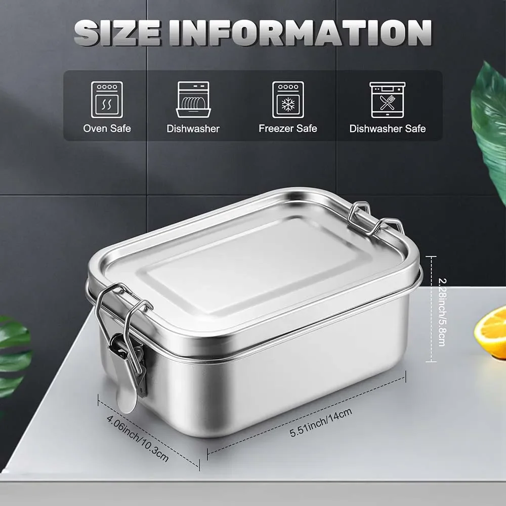 4 قطعة صندوق بينتو من الفولاذ المقاوم للصدأ صندوق غداء معدني حاويات تخزين الطعام مع مشابك قابلة للقفل صناديق الوجبات الخفيفة للغداء للعمل، SchooL