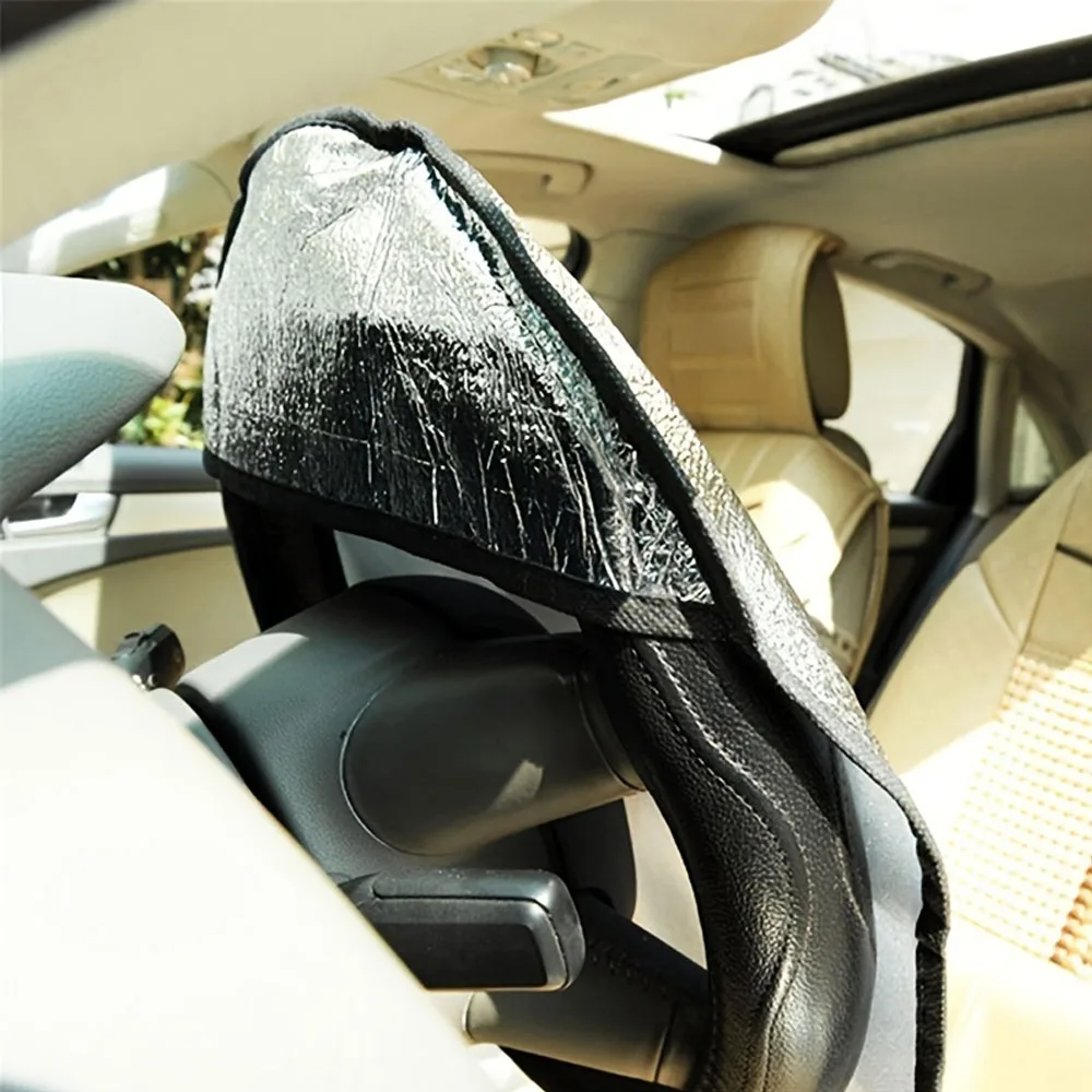 1 Universal غطاء عجلة قيادة السيارة للصيف واقي من الشمس ظلة شمسية غشاء ألومنيوم عاكس عزل حراري إكسسوارات داخلية