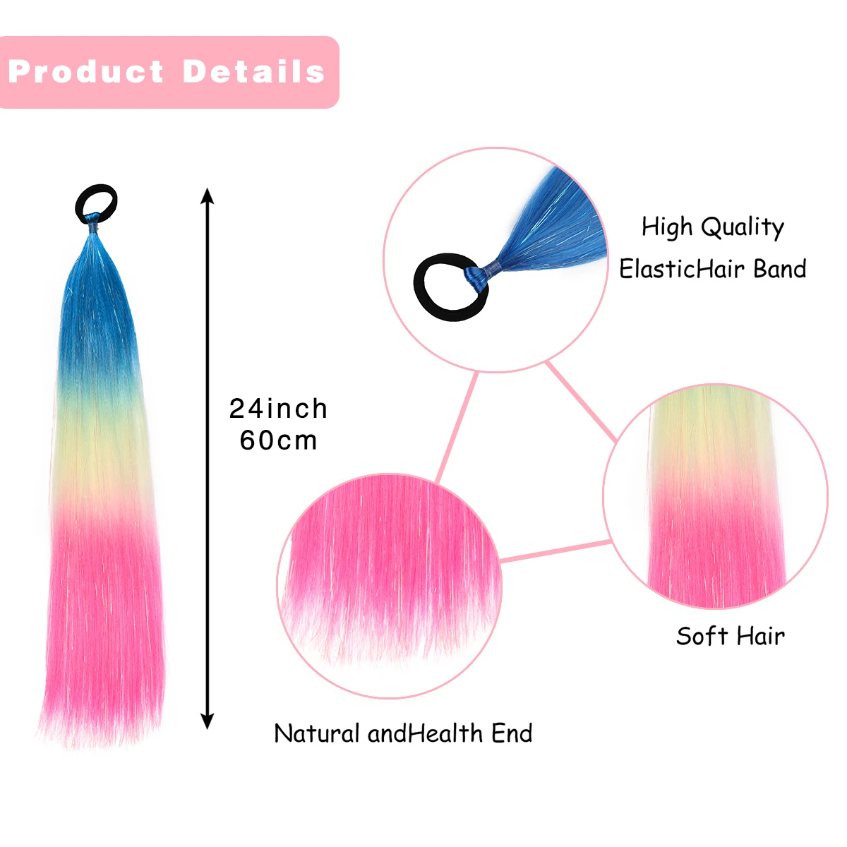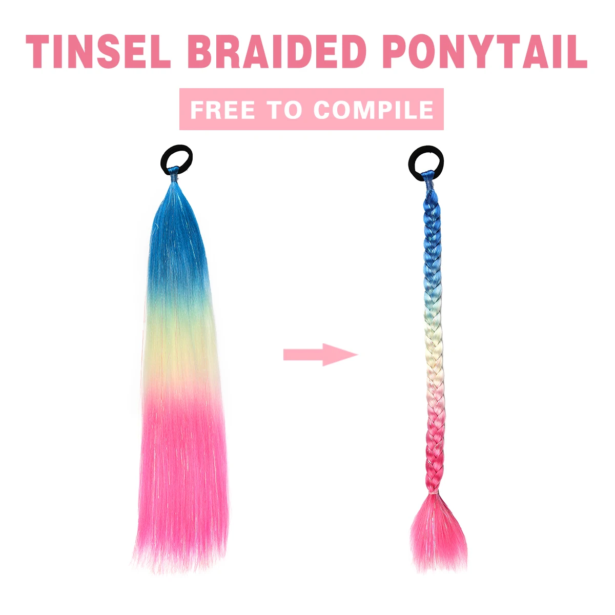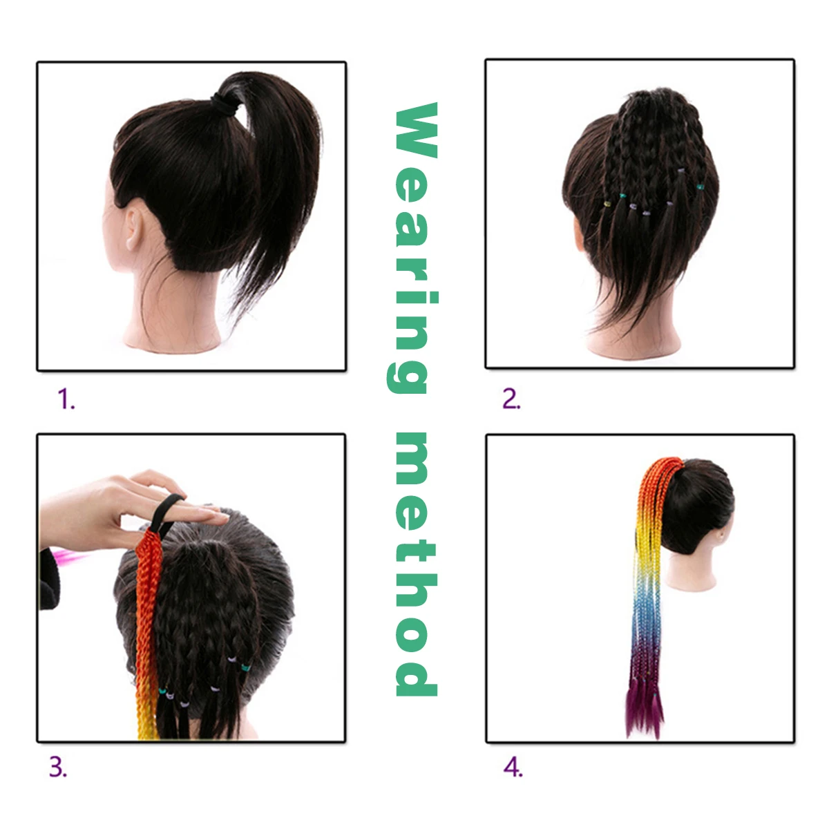 ذيل حصان مضفر اصطناعي للتجديل ، وصلات شعر أومبير ، شعر كبير ، ملون ، بهرج مجنون ، تصنعه بنفسك