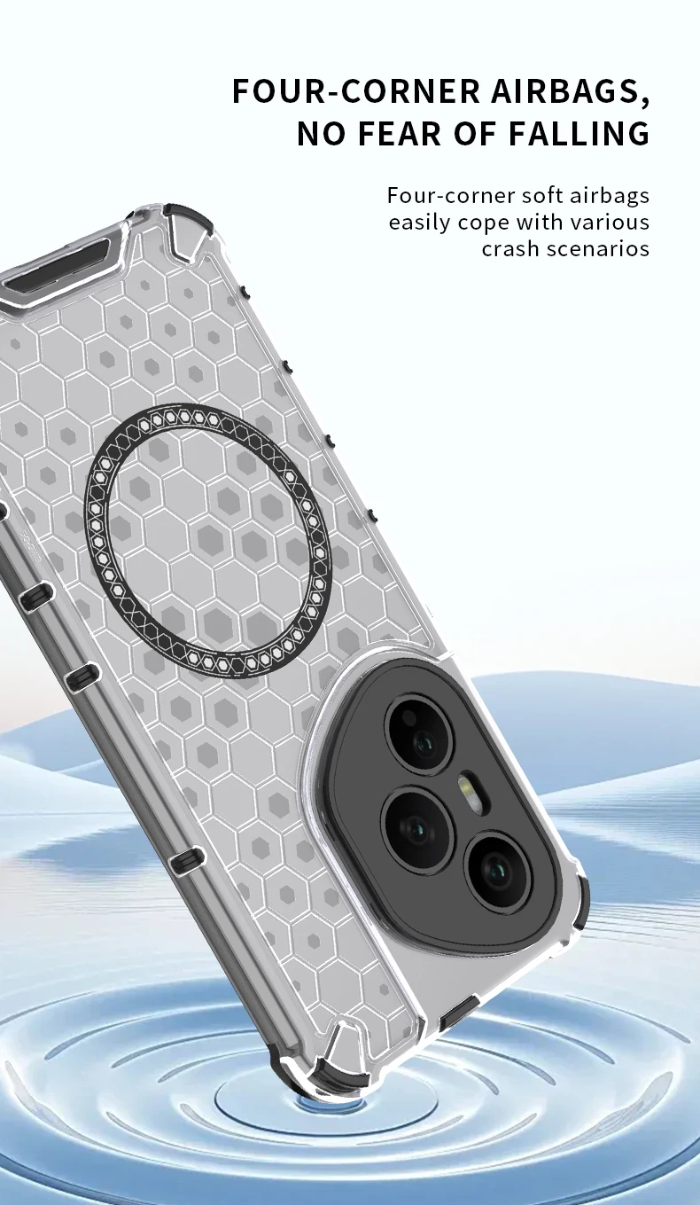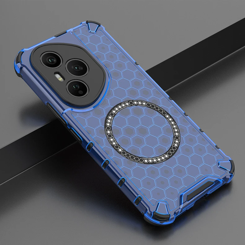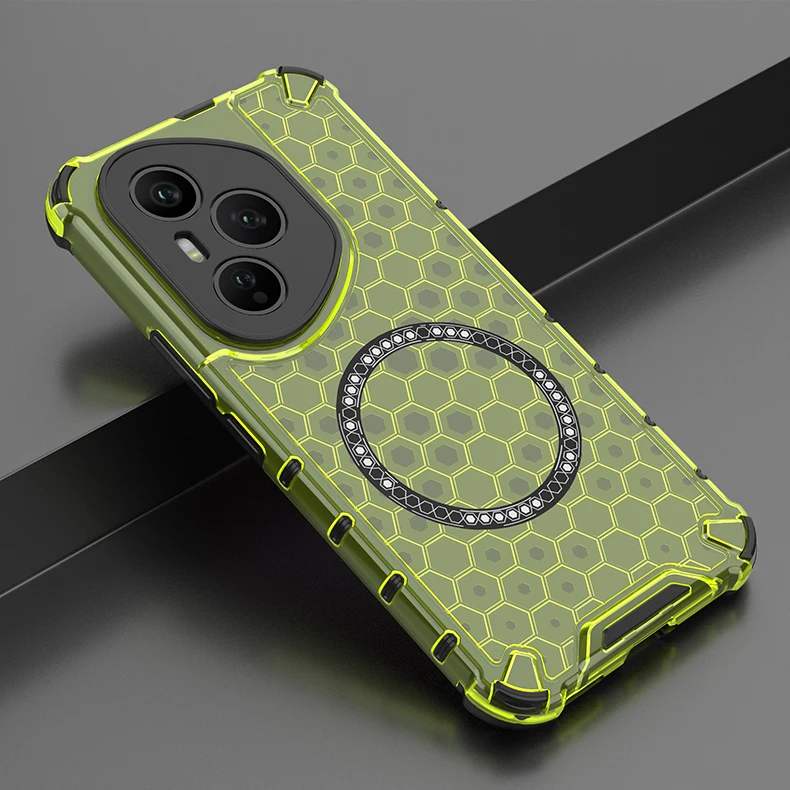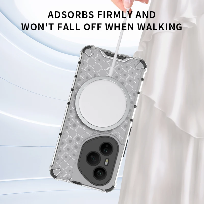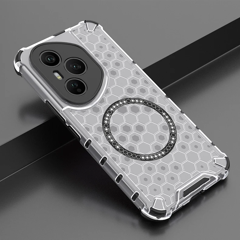 حافظة لهاتف Magsafe مغناطيسية من مادة TPU على شكل قرص العسل لهاتف Honor 400 Pro Lite وسادة هوائية مضادة للسقوط لتبديد الحرارة غطاء ممتص للصدمات ناعم